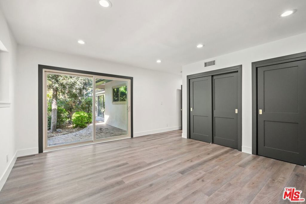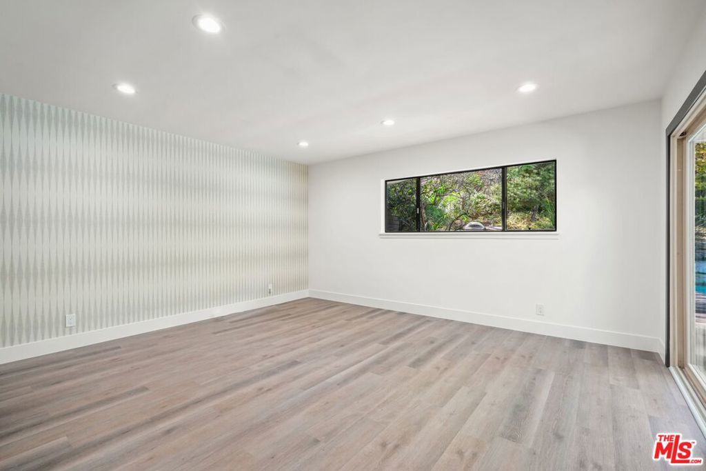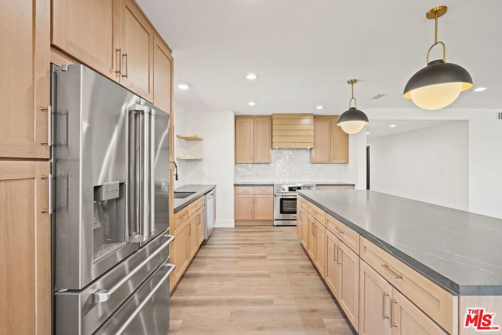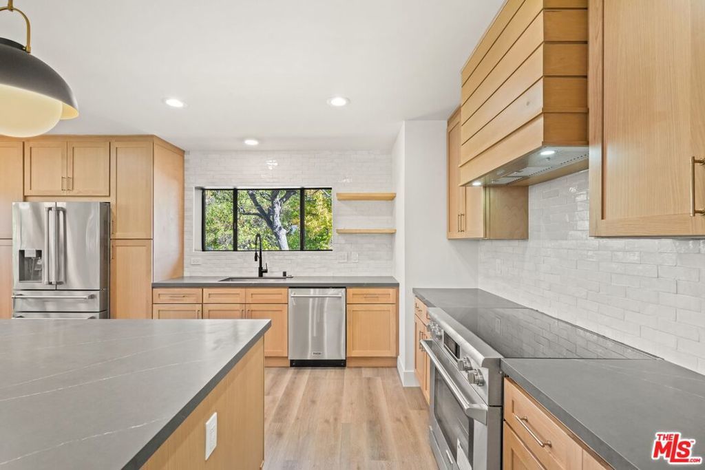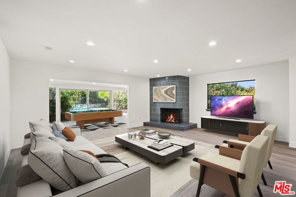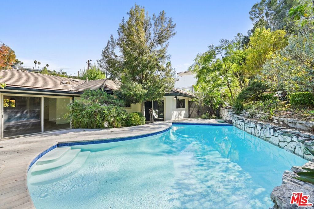 Welcome to this stunning Mid-Century Modern single-level pool home, ideally located south of the Boulevard in prestigious Sherman Oaks within the highly sought-after Roscomare School District. This elegant residence offers over 1,800 square feet of beautifully appointed living space, featuring 3 spacious bedrooms and 2 fully remodeled bathrooms, all designed with impeccable style. It's rumored that famed designer Edward Fickett was behind this architectural gem! Step inside to be greeted by natural light streaming through expansive glass walls, filling the space with warmth and highlighting the lush, tropical landscaping that surrounds the property. Enjoy breathtaking city views from various vantage points, creating a tranquil and private retreat. The standout sunroom, enclosed for year-round enjoyment, offers versatile options as a playroom, lounge area, or entertainment space with direct access to both the home's interior and exterior. This home has been meticulously upgraded for modern comfort, including central heating and air, copper plumbing, and a security system. Additional enhancements include smart home features, such as smart lighting, entry locks, doorbell, smoke detectors, and thermostats, making daily life effortlessly convenient. The chef's kitchen is fully remodeled, boasting new appliances, including induction stove, beautiful and functional range hood and large refrigerator. The maple cabinetry, large center island with massive amounts of cabinet and storage space and a custom-built dining nook for your meals. Luxury Vinyl Plank flooring flows throughout, complementing the fresh paint, new doors, trim, and mouldings, all chosen to enhance the home's classic mid-century charm. The primary bedroom offers private access to the serene backyard, where you'll find a hidden Zen-inspired sitting area the perfect escape. With an attached two-car garage, convenient access to both the Westside and the Valley, as well as proximity to top-tier shopping, dining, entertainment, and award-winning Roscomare Elementary School, this home truly captures the best of Sherman Oaks living. This is a rare opportunity to own a beautifully upgraded, move-in ready mid-century oasis in a quiet, sun-drenched location.