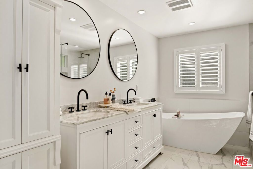 This beautifully renovated single story farmhouse is located in the heart of Colfax Meadows, one of Studio City's most desirable neighborhoods, and is zoned for both Carpenter Avenue Elementary and Colfax Elementary Charter. A thoughtfully designed layout creates an open living area filled with natural light and a comfortable, inviting feel. The kitchen is modern and functional, featuring a stone island, pantry wall, updated appliances, and a dining area that works just as well for casual meals as it does for entertaining. Two en suite bedrooms sit at the front of the home, while the primary suite is tucked away at the rear, offering a quiet and private retreat. A conveniently placed powder room sits near the main living space. A major highlight of the property is the fully permitted backyard ADU, complete with its own kitchen, bathroom, and bedroom. This flexible space is ideal for guests, a home office, or potential rental income. Additional features include plantation shutters, a dedicated laundry room, ample storage, low maintenance artificial turf with an automatic drip system, and a tankless water heater. Set just minutes from popular restaurants, shops, and everyday conveniences, this Colfax Meadows home offers comfort, flexibility, and exceptional value in a prime Studio City location.