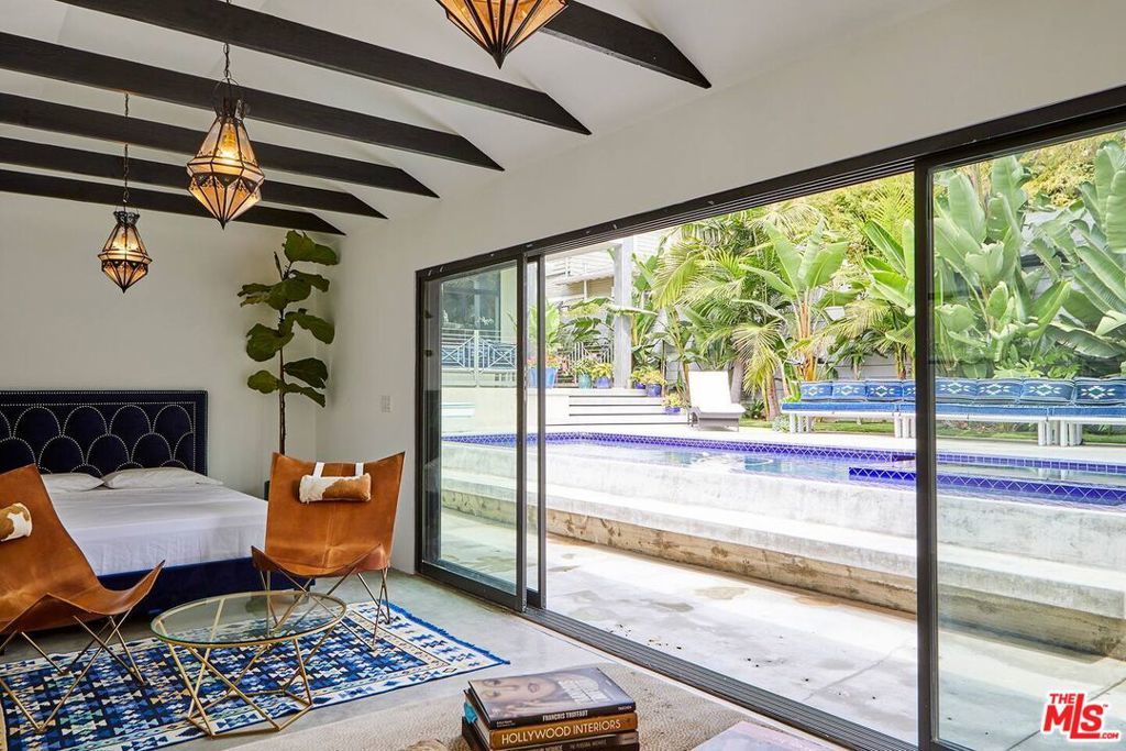 FURNISHED RENTAL! Newer construction in a highly coveted pocket north of Hollywood Boulevard, just steps from iconic Runyon Canyon. This gated 4-bedroom, 4.5-bath home plus a bonus back house with its own bathroom offers over 3,300 sq ft of living space with an open, sun-filled floor plan, hardwood floors, and Hollywood-chic design. Each bedroom enjoys its own uniquely curated theme, bringing character and style throughout.A gourmet chef's kitchen impresses with top-of-the-line appliances, custom cabinetry, and gorgeous countertops. Outside, a lush tropical yard creates a private 5-star oasis complete with a sparkling pool and spa. Moments from Sunset Boulevard's dining, nightlife, fitness studios, and entertainment venues. This residence blends hillside retreat with unmatched city convenience.
