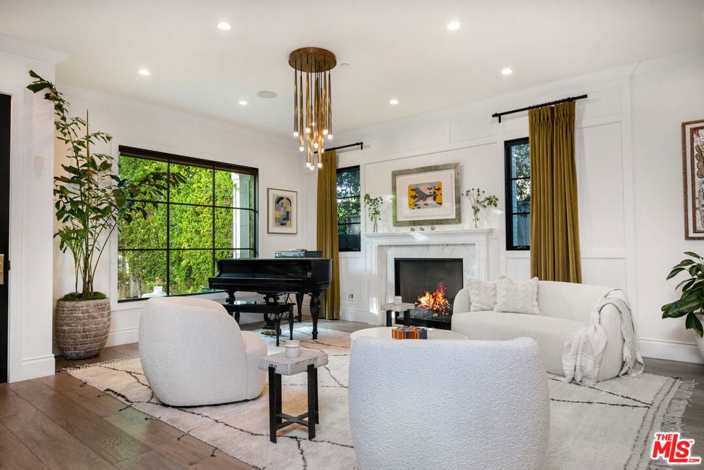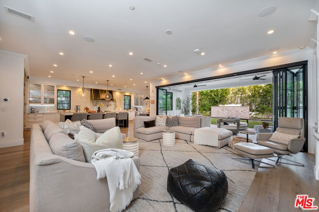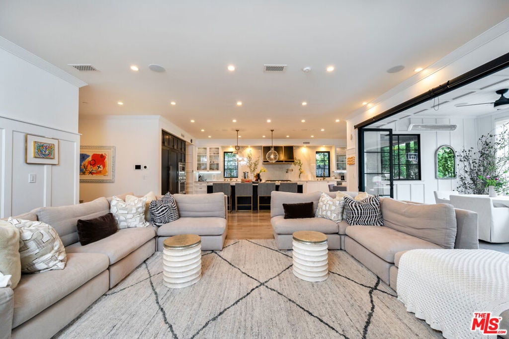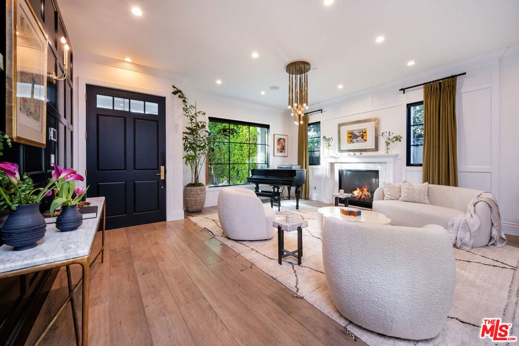 Beautifully designed and impeccably built in 2017, this mint-condition private 6-bedroom, 6-bath smart home is ideally located in the heart of Beverly Grove, offering the perfect blend of traditional charm and contemporary sophistication. From the moment you enter, the home exudes a warm and inviting ambiance, thoughtfully crafted for both comfortable everyday living and elegant entertaining.The first floor features expansive formal living and dining spaces creating an effortless sense of openness and comfort. At the heart of the home is an exceptional custom eat-in kitchen, complete with a large walk-in pantry and a 100-bottle wine refrigerator. The kitchen flows seamlessly into an inviting great room with 20-foot stackable bi-fold doors, opening to a spacious covered patio for true indoor-outdoor living.The main level also includes two generously sized bedrooms with en-suite baths and a stylish powder room. Upstairs, three additional en-suite bedrooms with ample closets provide comfort and privacy, while the stunning primary suite serves as a peaceful retreat, showcasing dramatic volume, 14-foot vaulted ceilings, a massive walk-in closet, a luxurious spa-like bath, and a private patio overlooking the backyard.The meticulously maintained grounds feel like a private resort, featuring a large grassy yard, trellised outdoor dining area, and a sparkling pool with waterfall, Baja shelf, and spa. This move-in ready home, maintained in pristine mint condition, offers the ultimate warm and welcoming lifestyle in one of Los Angeles' most sought-after neighborhoods.
