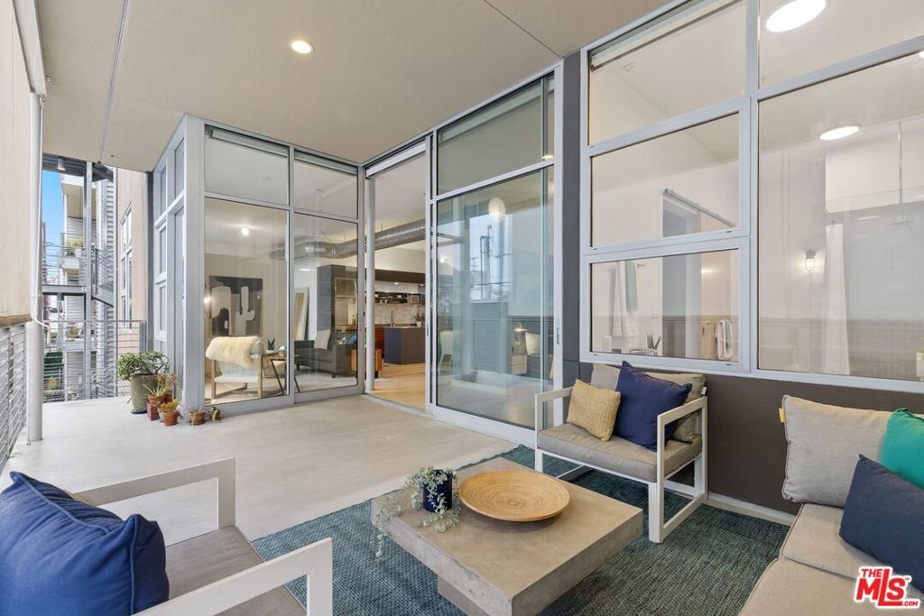 Set in the heart of the Marina Arts District, Gallery Lofts delivers a refined urban aesthetic just minutes from the ocean. Positioned on the second floor, the residence features an open floor plan, soaring ceilings, and expansive floor-to-ceiling windows paired with Fleetwood sliding glass doors, creating a light-filled interior with seamless indoor-outdoor flow. South-facing exposure enhances natural light throughout the day, while the home's thoughtful orientation offers privacy with no direct views into the unit. Clean lines, refined finishes, and a flexible layout make the space both functional and visually striking. The streamlined kitchen is equipped with stainless steel appliances and connects effortlessly to the main living area ideal for both everyday living and entertaining. A spacious private patio extends the living space outdoors, providing the perfect setting for morning coffee or evening aperitif. The primary suite is designed as a calm retreat, featuring a walk-in closet and a spa-inspired bath with a soaking tub and separate glass-enclosed shower. A versatile secondary space can function as a bedroom, office, or den and is complemented by an adjacent bathroom, allowing for adaptable use to meet changing lifestyle needs. Additional features include automated window shades, central A/C and heat, a tankless water heater, in-unit laundry, and two-car tandem parking with exclusive-use EV charging pre-wiring. Ample guest parking is also available. Gallery Lofts is a well-maintained, landscaped community offering residents access to an outdoor lounge with BBQs, an inviting space for outdoor enjoyment and relaxation. With enduring design, modern systems, and a functional layout, this residence is well-suited as a primary home or long-term investment. Located close to Venice Beach, Abbot Kinney, Playa Vista, bike paths, dining, shopping, and entertainment, the home offers a distinctive blend of urban edge and coastal proximity. A polished, design-forward residence in one of Marina del Rey's most dynamic and consistently desirable neighborhoods.