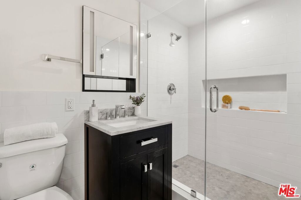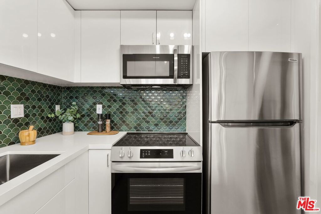 Welcome to Park Westwood Towers, an iconic high-rise in the heart of Westwood Village, located just one block from UCLA. Designed by acclaimed architect Victor Gruen, this New York-style building pairs timeless design with modern-day comfort. This light-filled 1-bedroom, 1-bath condo features wide city views through wall-to-wall windows with a smart, flexible layout. The brand-new kitchen is both stylish and functional, with crisp white cabinetry, stone countertops, new stainless steel appliances (including a wine fridge), and a chic tile backsplash. The kitchen flows into an open-concept living and dining area, ideal for connected everyday living. French doors open from the bedroom to the living space, bringing in even more natural light and allowing for versatile use. The newly remodeled bathroom includes a large walk-in shower with floor-to-ceiling tile and designer finishes. Refinished parquet wood floors, split-zone heating and air, high ceilings, and fresh paint create a clean, inviting feel, while abundant closet space, including a walk-in, offers excellent storage. Park Westwood Towers offers 24-hour doorman, valet guest parking, an elegant lobby, onsite management, and a heated pool and spa. HOA dues of $1,101/month cover almost everything -- water, sewer, trash, cable, internet, free community laundry and one gated parking space. With UCLA, restaurants, shopping, Trader Joe's, the W Hotel, and more just outside your door, this turnkey condo offers style, convenience, and comfort in one of Westwood Village's most desirable addresses.
