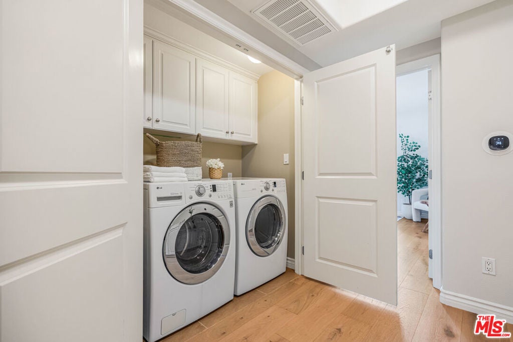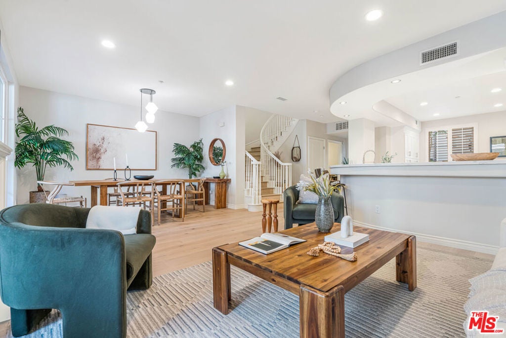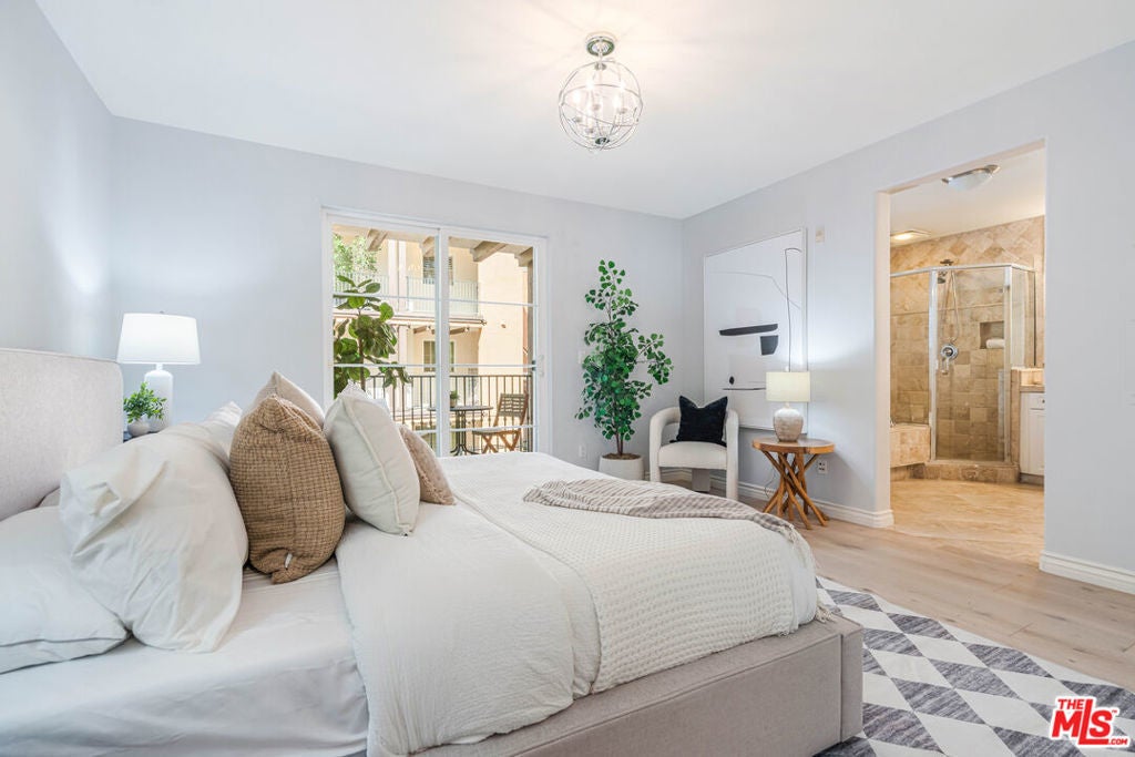Beautifully updated home in Serenade at Playa Vista, ideally located just across from Concert Park and minutes from Runway's shops, dining, and top community amenities. This light-filled residence features new wide-plank wood flooring, fresh paint, and an open-concept layout designed for modern living. The reimagined kitchen is outfitted with quartz countertops, soft-close shaker cabinetry, under-cabinet lighting, and high-end appliances including a Bosch dishwasher and Frigidaire microwave. The living and dining areas flow seamlessly to a private patio, perfect for everyday relaxation or entertaining. A stylish powder room completes the first floor.Upstairs, you'll find two ensuite bedrooms. The spacious primary suite features a private balcony, custom walk-in closet, and a beautifully updated bathroom with dual vanities. The second bedroom includes its own full bath and upgraded closet system, with a separate laundry area just down the hall.Additional upgrades include new HVAC systems with Ecobee smart thermostats on both levels, a keypad entry, built-in security system, and ample storage. Two individual parking spaces provide convenient access to a nearby community EV charger. Enjoy resort-style Playa Vista amenities including The Resort, Centerpointe Club, Whole Foods, Cinemark, fitness studios, and Playa Vista Elementary School all just moments away.