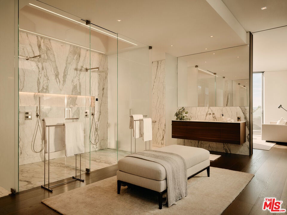 Set high above the city on a private promontory in the exclusive Bird Streets, this exceptional architectural residence commands sweeping, unobstructed vistas from the San Gabriel Mountains to the Pacific coastline. Designed by acclaimed architect Zoltan E. Pali, FAIA, and executed by renowned custom builder Dugally Oberfeld, the home is a masterful blend of sculptural design, precision craftsmanship, and effortless livability. Walls of floor-to-ceiling glass and expansive sliding doors create a seamless indoor-outdoor experience, while a dramatic approximately 60-foot retractable skylight floods the interiors with natural light and frames the ever-changing sky. The thoughtfully conceived floor plan offers multiple living and entertaining areas, two fully equipped modern kitchens, a media lounge, and a temperature-controlled wine cellar. A dedicated wellness wing elevates the living experience with a spa-like retreat featuring a sauna, steam room, exercise studio, and float pod. Outdoors, the property unfolds into a private resort environment with a generous flat yard, infinity-edge pool with Baja shelf, heated spa, and fire pit lounge ideal for both intimate relaxation and large-scale entertaining. A rare and refined offering, this architectural estate represents a singular opportunity to own a landmark residence in one of Los Angeles' most coveted hillside enclaves, designed for those who appreciate privacy, design excellence, and breathtaking views.