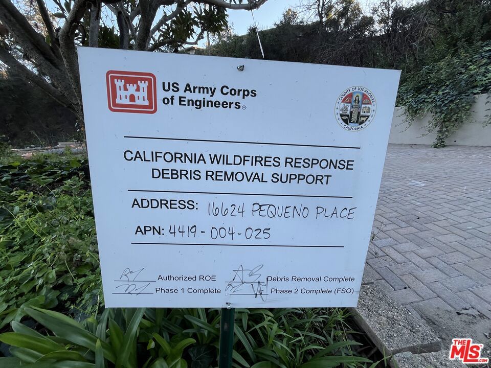 Located in the Marquez Knolls neighborhood of the Palisades, this 11,800+ sq ft, mostly flat lot offers beautiful mountain views and a rare opportunity to build a custom home in a well-established setting. The former residence is gone, but the lot's elevated position, mature foliage, and lush canyon landscapes remain intact. Set on a quiet cul-de-sac with just 15 properties, the location offers the most pastoral and serene residential atmosphere. Several surrounding homes remain, contributing to the neighborhood's original character as the area thoughtfully rebuilds. Phase I and Phase II debris removal have been completed, allowing the property to be build-ready. The lot's size and layout offer flexibility for a one, two, or three level retreat with generous outdoor space and a private backyard surrounded by mature trees and green hillside. Conveniently situated near top-rated schools, Palisades Village, scenic hiking trails, and world class beaches, this property presents a unique chance to create a new residence in a tranquil setting in one of LA's most coveted coastal communities.