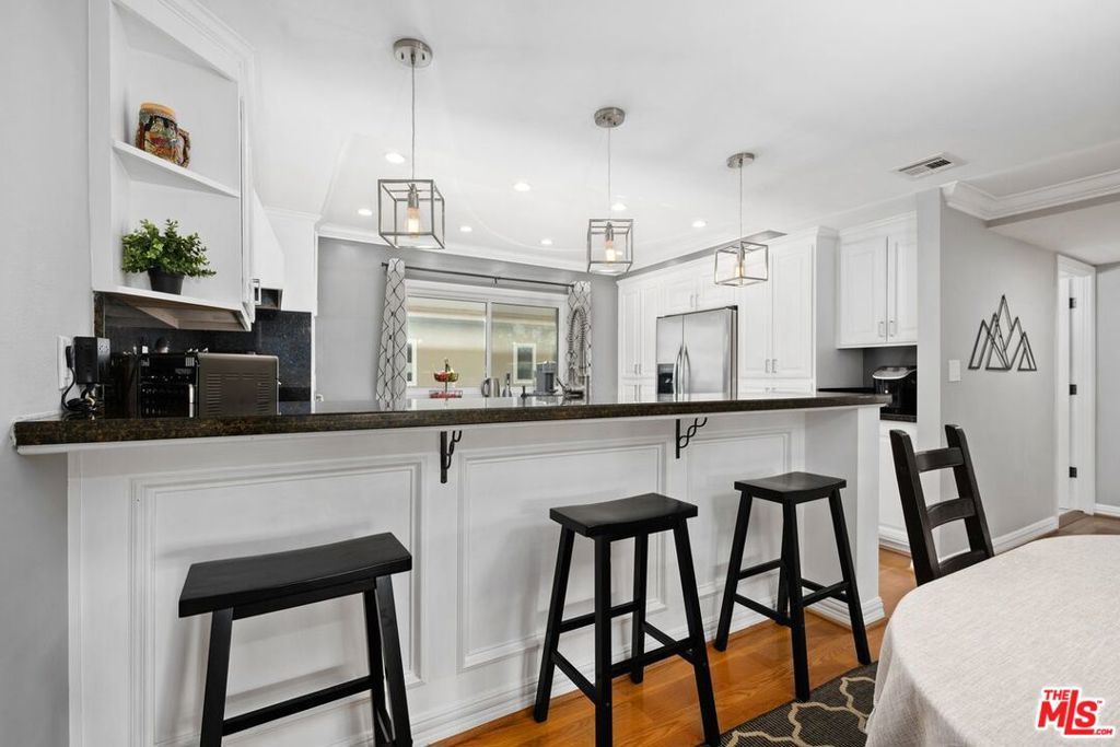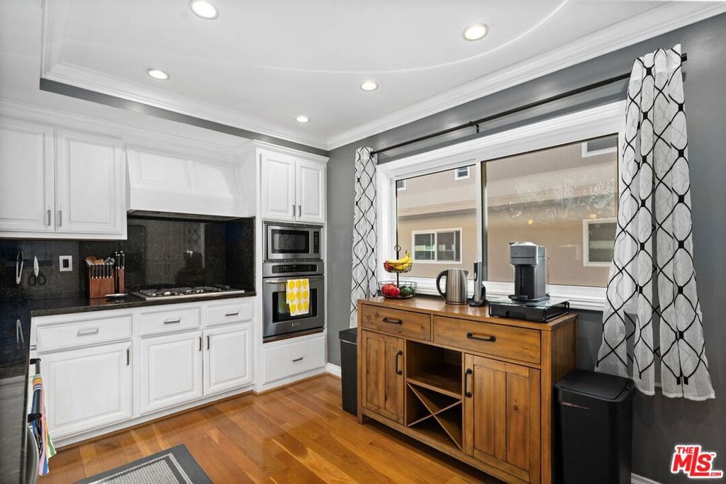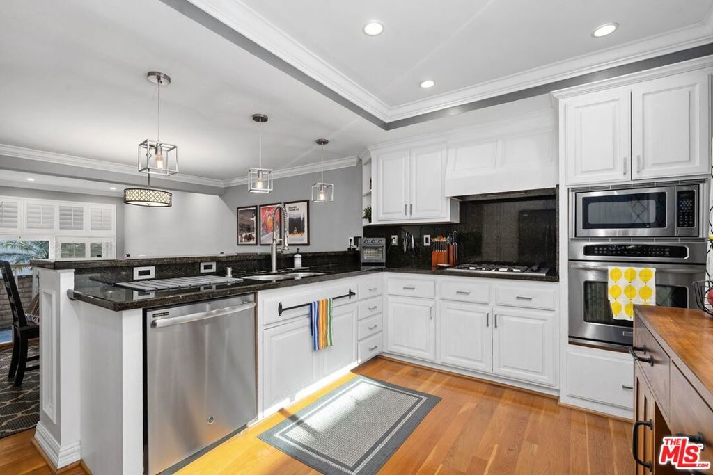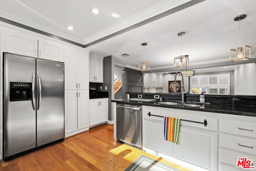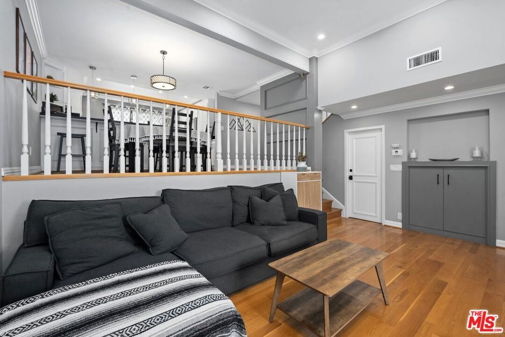 This light-filled tri-level townhouse is ideally located in the heart of Marina del Rey and offers 3 bedrooms and 2.5 bathrooms with a thoughtfully designed, modern open layout. Beautiful hardwood floors run throughout most of the home, enhancing the bright and airy interiors and creating a warm, cohesive feel across all living spaces. The dramatic living room showcases soaring high ceilings and abundant natural light, making it an inviting space for both everyday living and entertaining guests. The chef's kitchen is well-appointed with granite countertops, stainless steel appliances, generous cabinetry, and ample prep space, perfectly suited for cooking and gathering. Adjacent to the kitchen, the dining area overlooks the living room below, adding architectural interest and an ideal setting for hosting dinners or casual meals. Contemporary remodeled bathrooms offer sleek finishes and a spa-like ambiance, providing comfort and style throughout the home. Additional highlights include a private two-car garage with direct entry into the unit, offering both convenience and security. This exceptional residence is perfectly positioned near Marina del Rey's renowned dining, shopping, beaches, and outdoor recreation, delivering the best of coastal living with modern comfort and effortless style.