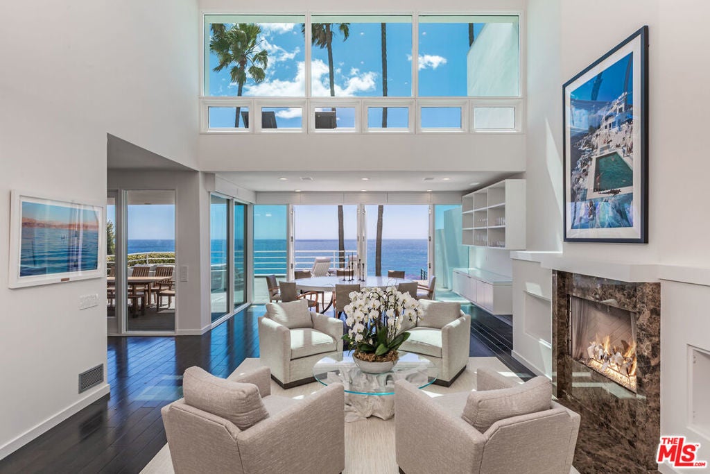 Set against the cinematic backdrop of Malibu's sparkling coastline, this rare oceanfront townhome offers a masterclass in contemporary coastal elegance. Artfully conceived for seamless indoor-outdoor living, the residence blends architectural drama with refined comfort, ideal for both intimate gatherings and grand-scale entertaining. Beyond a gated, private courtyard, a gracious entry unfolds into a soaring double-height great room where a dramatic wall of glass captures panoramic vistas stretching from the Pacific Ocean to the distant islands and twinkling city skyline. Rich French oak floors, curated lighting and a streamlined fireplace create an atmosphere of understated luxury, while the adjacent dining area exudes warmth and sophistication. Anchoring the heart of the home is a couture-caliber chef's kitchen, where bespoke cabinetry, a waterfall marble island and top-of-the-line appliances converge in perfect harmony. Sliding glass doors reveal an expansive terrace that invites beachfront alfresco dining or moonlit drinks, overlooking a landscaped seaside lawn that feels worlds away. On the main level, flexible, yet elevated living pervades with a guest bedroom or office, full bathroom, powder room, wine storage and a chic media lounge. Upstairs, the luxurious ocean-facing primary suite is a serene retreat with a fireplace, sitting area, wraparound windows, bespoke walk-in closet and a spa-like bath with radiant heated floors. The private, expansive terrace captures the majestic Malibu sunrises and sunsets. Two additional ensuite guest bedrooms provide refined comfort, while a detached guest studio above the garage includes a wet bar, fireplace and luxe bathroom, perfect for family, guests or creative pursuits. This is not just a residence, it's Malibu's ultimate coastal statement. Effortless glamour meets jaw-dropping style in a setting that defines the most mesmerizing, most coveted beachside lifestyle California can offer.