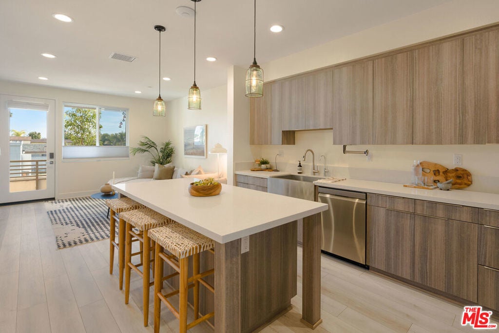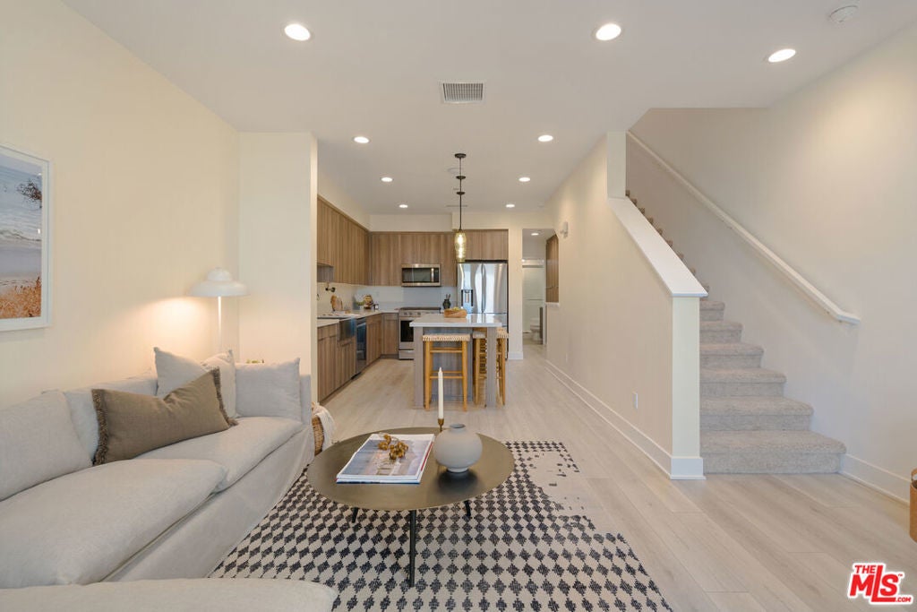Welcome to this 3-level townhome in Expo Walk, an award-winning gated community in vibrant Leimert Park built in 2020. Upon arrival, you're greeted by a generous private patio ideal for morning coffee and evening entertaining. Inside, the entry level features a versatile bonus space perfect as a home office, den, or mudroom. Upstairs, the main living level boasts an open-concept layout with a spacious kitchen and living area, ample hallway storage, and a full bedroom with an adjacent bath. From the living room, step out onto the balcony for views of Downtown Los Angeles. The third floor is dedicated to elevated comfort, with a spacious primary retreat featuring a walk-in closet, en-suite bath, and more city views. An additional en-suite bedroom and a full laundry room complete the top level. This home also includes a private tandem 2-car garage with direct access and an EV charger, offering convenience for modern lifestyles. The gated community features lush pocket parks, BBQ stations, fire pits, dog runs, and a communal ping pong table perfect for winding down or hosting guests. Ideally located near the Expo/Crenshaw Metro Station, Expo Walk offers unmatched connectivity to Downtown, Santa Monica, and LAX. All of this in a neighborhood rich with local favorites like Maydan Market, Highly Likely, and Johnny's. Enjoy the best of both worlds, urban access and gated serenity at 2911 Exposition Place #3.