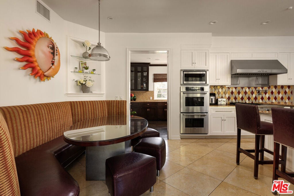 Set upon a highly coveted corner lot in Brentwood, this Traditional East Coast-style estate offers five bedrooms and seven bathrooms across 6,592 square feet of refined living space. Pairing timeless elegance with contemporary luxury, the home features sun-drenched living areas, formal dining room, and a chef's kitchen with extensive butler's pantry, dual dishwashers, wet bar, and built-in wine refrigeration. The upper level showcases three spacious bedrooms, including an extraordinary primary suite with vaulted ceilings, travertine fireplace, private balcony, and dual spa bathrooms featuring an oversized double shower, jetted tub, matching walk-in closets, and skylights. The resort-style backyard is a true oasis with mature hedging, solar-heated pool and spa, stone fireplace, built-in BBQ, and pergola-covered dining area. Ideally located moments from San Vicente yet peacefully secluded, this distinguished estate represents the pinnacle of refined Brentwood living.