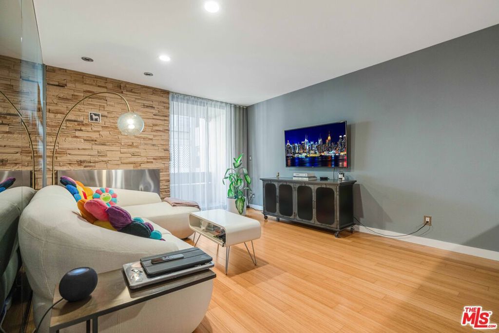 Welcome to the latest upgraded and meticulously maintained turn-key one bedroom, one bath condo in the heart of West Hollywood! This pied-a-terre offers a sophisticated location in a highly sought after building. The home features sleek Miele-equipped kitchen appliances, bamboo flooring, a full audio-visual setup, including a spa-like limestone bath with a luxurious five-head shower system. Designer finishes are showcased throughout, including a striking wall of tempered glass that stylishly separates the bedroom from the living space. Whether enjoying a cozy evening by the fireplace or stepping out to experience the renowned shopping, dining, and nightlife of nearby West Hollywood, this chic hideaway delivers effortless city living at its finest. This neighborhood is known for location and convenience with a 92 walk score.