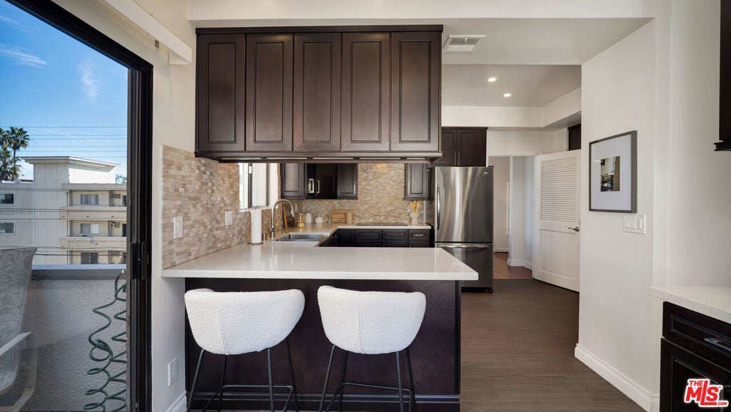 Rare top-floor corner penthouse in the heart of Westwood. Custom skylights flood this light-filled residence with natural light, while the sunken living room adds architectural edge and an open, loft-style feel. Clean modern finishes throughout deliver effortless style and everyday functionality. Set on the top floor for added privacy and volume, this home offers unbeatable Westside living just steps from Westwood Park, a short stroll to UCLA, and minutes from Westfield Century City's shopping and dining. A true standout in one of LA's most sought-after neighborhoods.