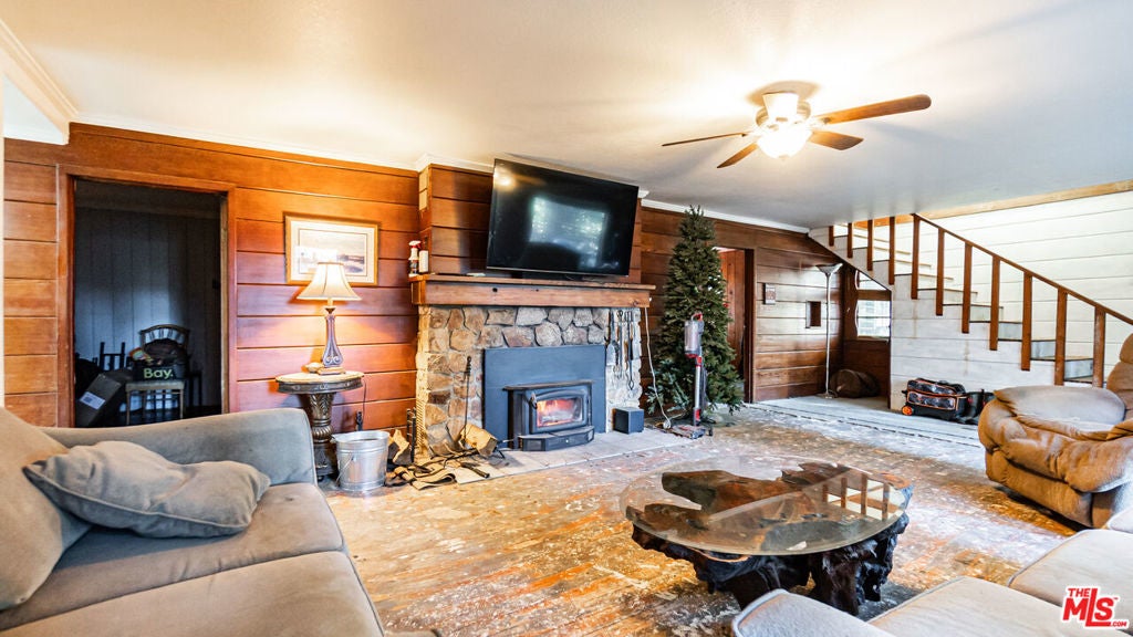 Welcome To Your Own Personal Mountain Retreat - Beautiful 5-Bedroom Crestline Home on a Large 3/4 Acre Lot in a Secluded Forest Setting! Spacious living room area w/ wall of windows showcasing treetop views, stone fireplace, & ceiling fan. Kitchen w/ walk-in pantry, center island, & breakfast nook. Large Master Bedroom Suite w/ soaring vaulted ceilings & skylights. Dual full length open-air decks & dining area w/ forest views - perfect for entertaining! Laundry room w/ storage. Detached 12x10' storage shed. Huge Bonus Basement area w/ tons of buildout potential. Central heat. Plenty of driveway parking. Needs a little TLC to be the perfect home!