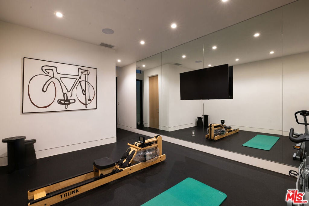 Set on one of Brentwood's most coveted streets, this three-story architectural masterpiece has been fully reimagined by Ashe Leandro, AD100 designer from New York, delivering a seamless blend of cutting-edge design and California indoor/outdoor living. The moment you enter the sweeping glass entryway, panoramic ocean views unfold, setting the tone for the home's striking aesthetic and unmatched sense of privacy.Boasting six bedrooms, the residence features a top-of-the-line chef's kitchen and expansive living spaces flooded with natural light through Fleetwood sliding glass doors that open directly to the backyard oasis. The upper level houses four en-suite bedrooms, including a lavish master suite with a grand walk-in closet and an oversized spa-like bathroom, complete with a stand-alone tub and steam shower overlooking the city and the Pacific Ocean.The lower level elevates entertainment to a new standard with a state-of-the-art home theater, fully illuminated onyx bar, temperature-controlled wine cellar, private gym, and guest bedroom, all seamlessly integrated with a Crestron home automation system for effortless living. Every corner of the home showcases meticulous design, exceptional craftsmanship, and a rare vision, making it perfect for families, couples, or any buyer looking to be in prime Brentwood with architectural integrity and panoramic views.