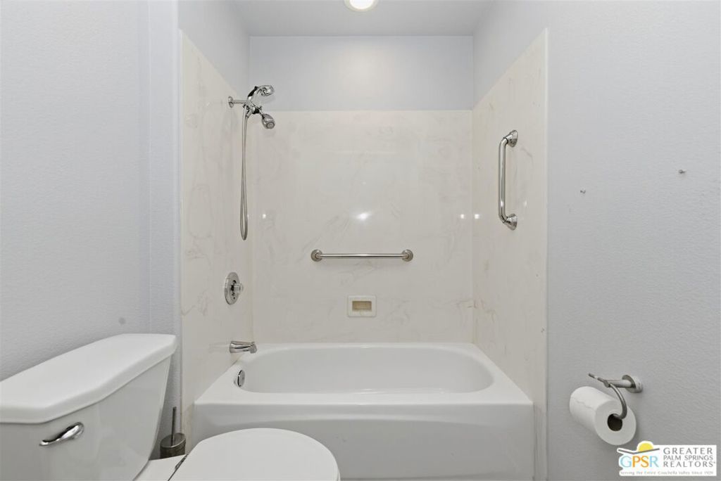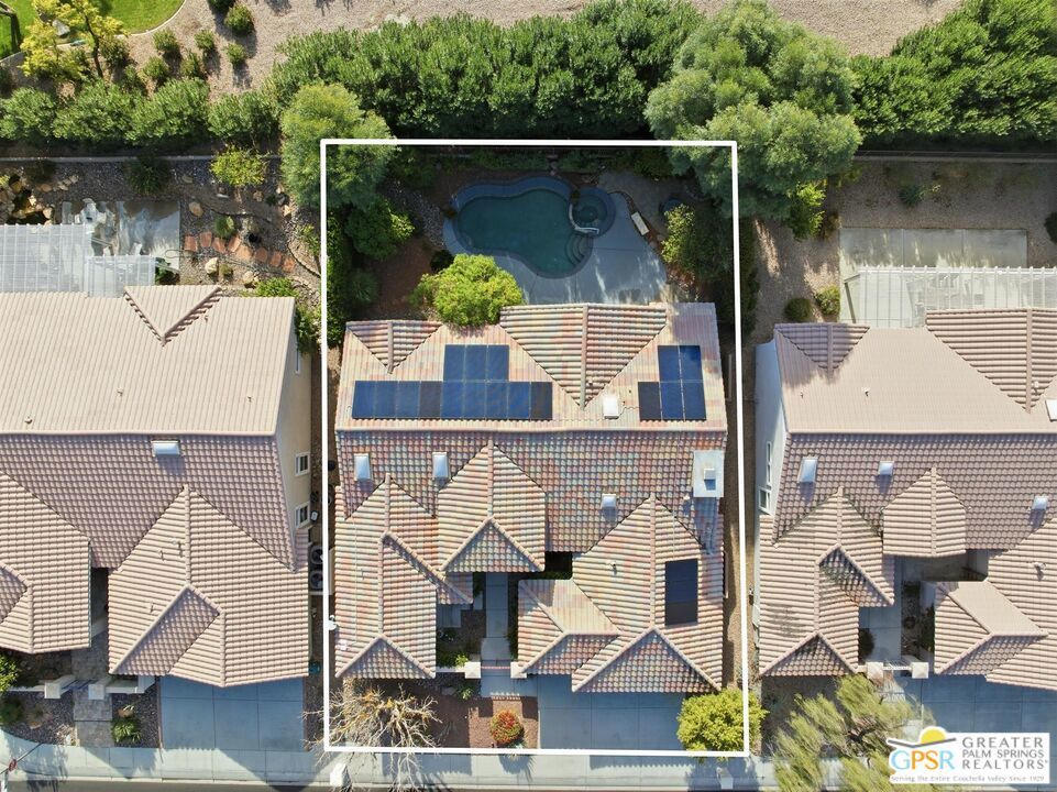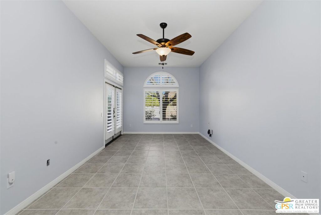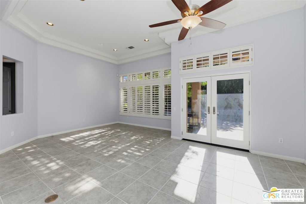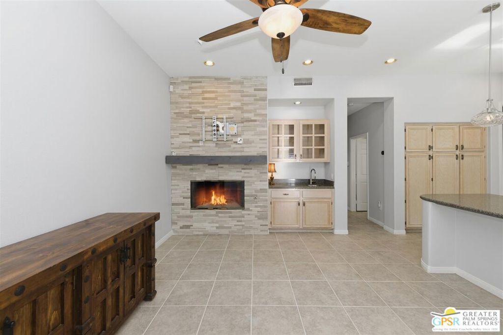 Welcome to desert living at its best in this beautifully upgraded home, tucked away on a quiet cul-de-sac in the heart of an active country club golf community. Enjoy stunning mountain views from the south-facing backyard, where relaxing by the Pebble Tec pool and spa becomes part of everyday life, ideal for afternoon sun and evening gatherings.This extended Emerald model offers a spacious great room with dining area and a thoughtfully updated kitchen featuring stainless steel appliances, quartzite countertops, and a casual eating area that flows seamlessly into the family room with fireplace, creating an inviting space for both entertaining and daily living.The home features three bedrooms, including a generous primary suite with ensuite bath and large walk-in closet. One secondary bedroom is well suited for use as a home office or den, while the third bedroom/casita is accessible from both the interior of the home and a separate exterior entrance, offering flexible use for guests or additional living space.Notable upgrades include a remodeled Pebble Tec pool, paid solar panels, tankless water heater, and newer air conditioning units replaced in 2018. Tile flooring and plantation shutters are featured throughout, along with mature desert landscaping. The two-car garage includes a dedicated golf cart bay, ideal for enjoying everything this sought-after community has to offer.A must-see opportunity for those seeking comfort, efficiency, and the Palm Desert lifestyle.