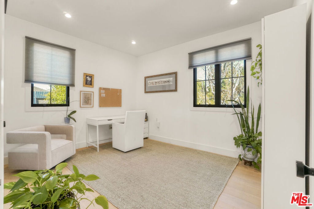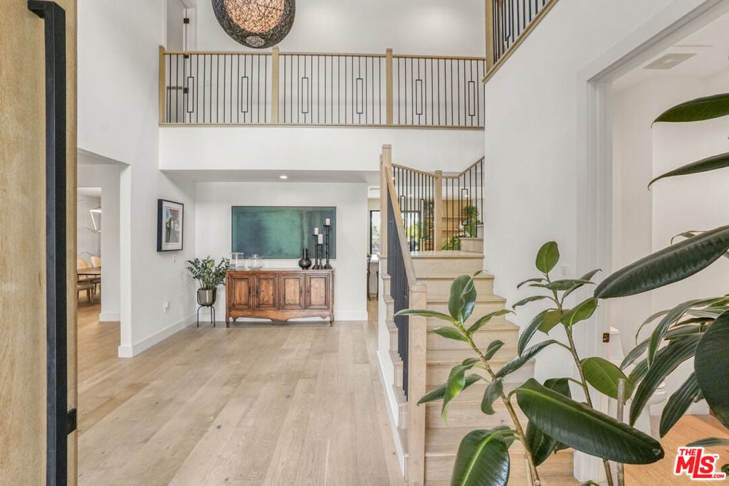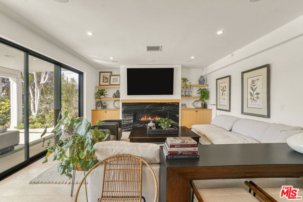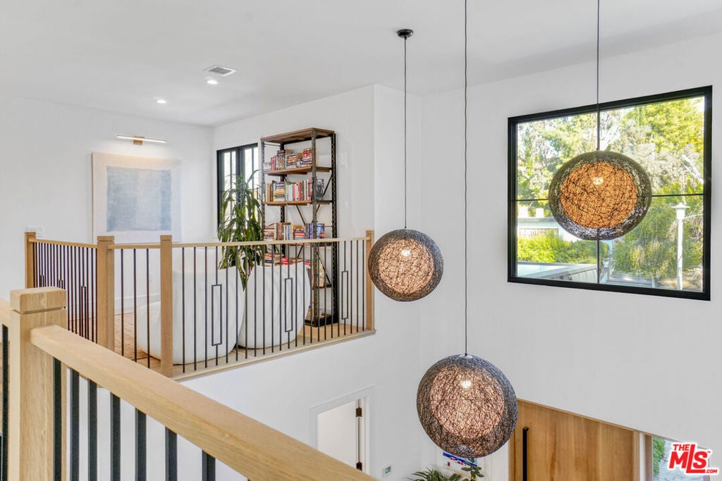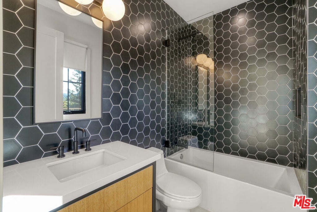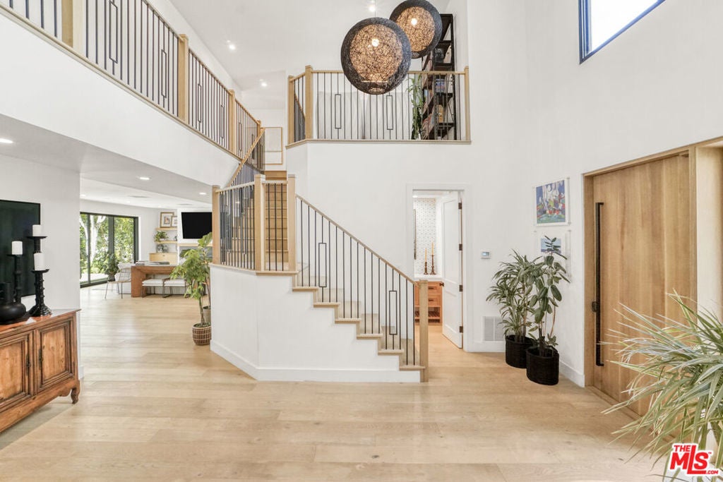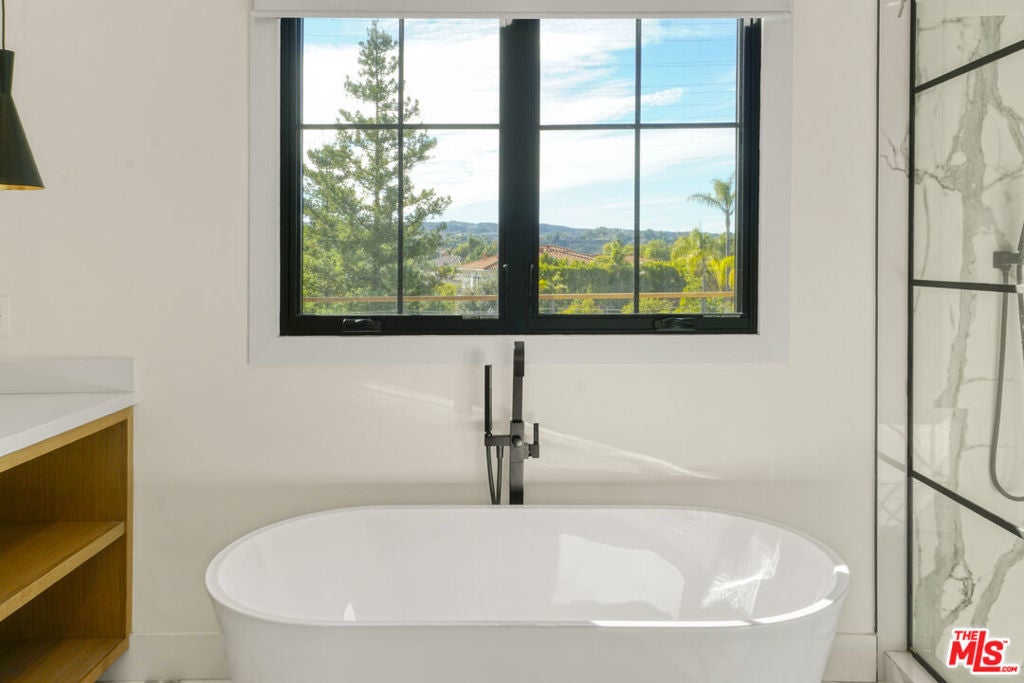 Nestled in the quiet and serene neighborhood of Encino Hills and surrounded by mature trees, this recently and completely renovated home offers stunning views and a thoughtfully designed floor plan featuring five spacious en-suite bedrooms, a powder room and library that could also function as a playroom. The expansive primary suite includes a large walk-in closet and a peaceful seating area, creating a true retreat. A beautiful wooden deck on the second floor, extending across the length of the house, provides a panoramic viewing point. The gourmet kitchen boasts high-end stainless steel appliances and custom cabinetry, complemented by abundant natural light throughout the home. Set on nearly half an acre, the property features a sparkling pool and jacuzzi both with new tile and plaster a dedicated dog run, fruit trees, and a vegetable garden. The yard is thoughtfully divided into several seating areas, perfect for relaxation and entertaining. Additional highlights include a three-car garage, integrated smart home technology for convenience and security, and a community tennis court. Elegant interior finishes evoke a relaxed yet refined atmosphere. This home is perfect for entertaining or simply relaxing and enjoying the serene surroundings.