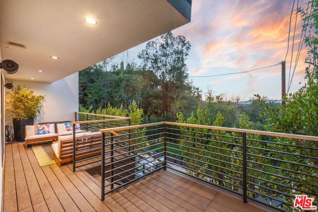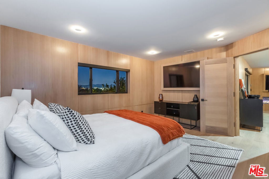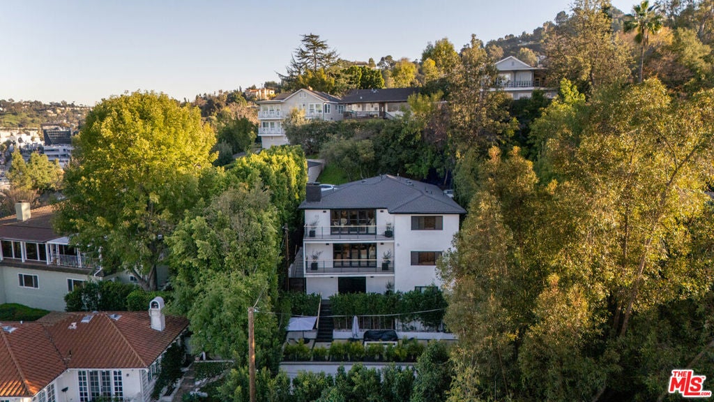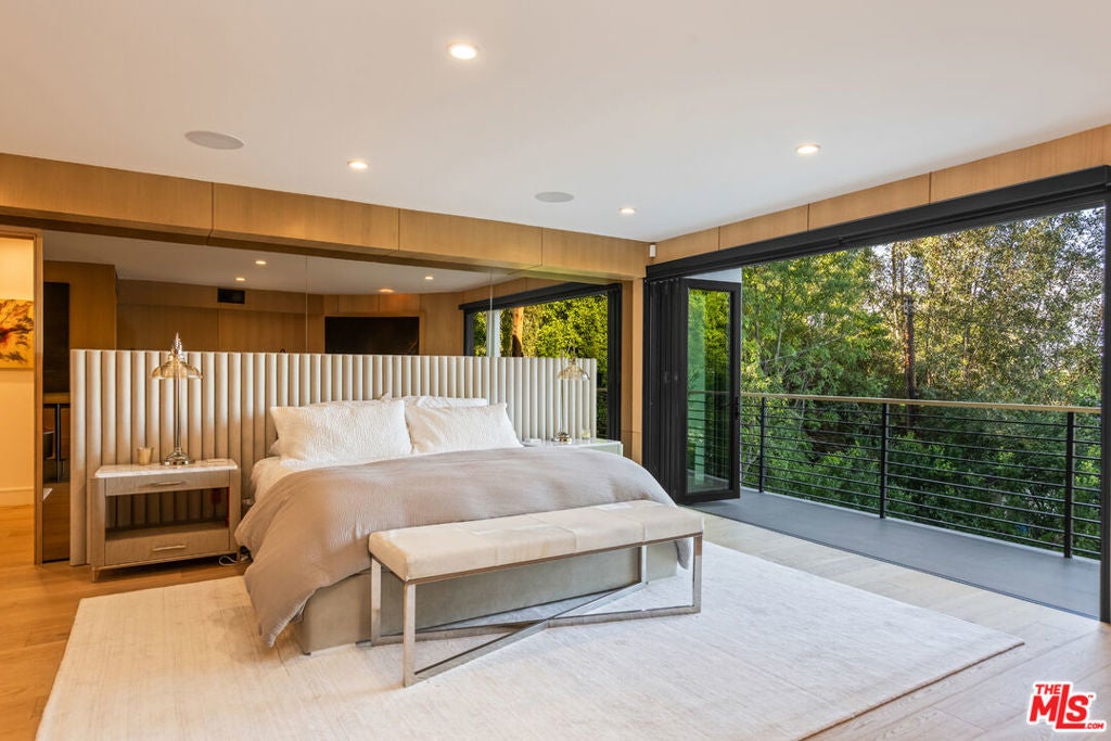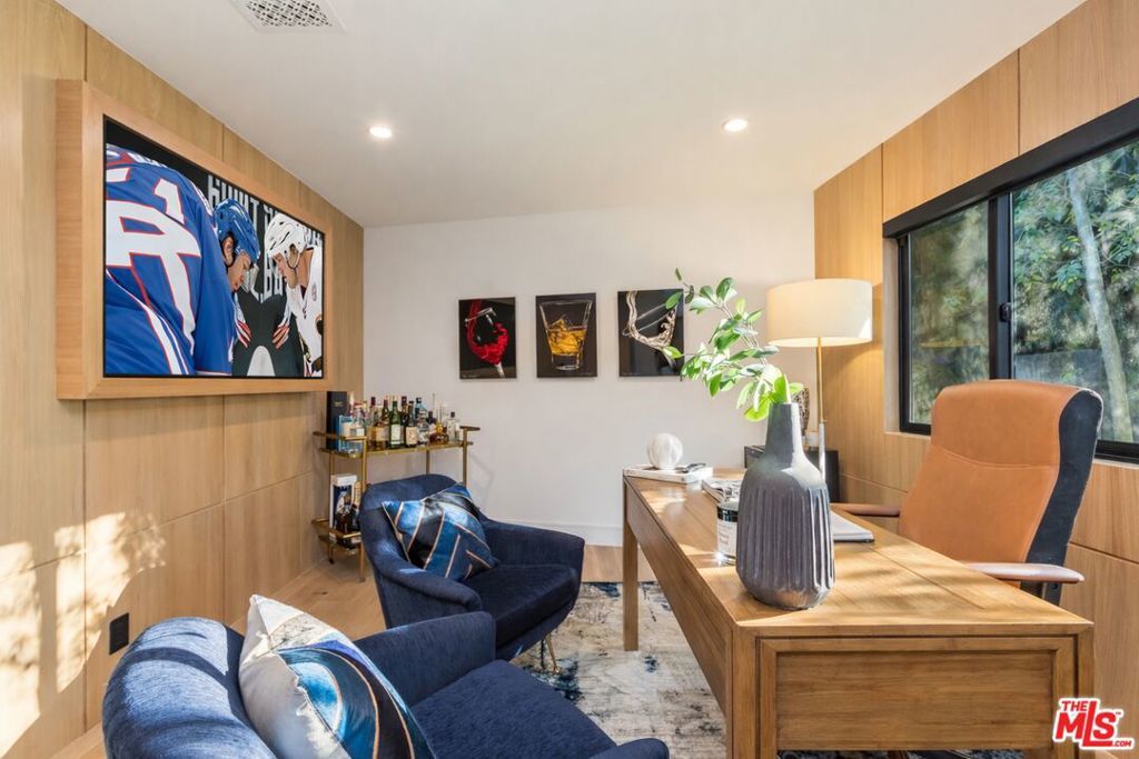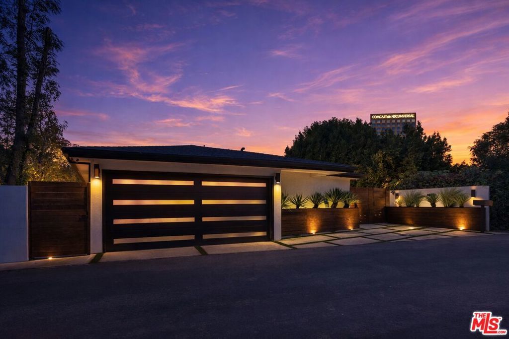 Privately perched just moments from the studios and the Sunset Strip, this fully reconstructed 2021 modern smart home is a true showpiece, delivering dramatic city views, exceptional privacy, and a level of design rarely found. Integrated with Control4, the home offers effortless customization of sound, lighting, and window shades, creating a seamless, elevated living experience.Designed to impress, the open main level unfolds with a fireplace anchored living room, a statement dining area with custom built ins, and walls of glass that open to an expansive view balcony made for sunset entertaining. The designer kitchen stuns with a rare matte black Viking range, marble countertops, and sleek bar seating.The primary suite is a private sanctuary featuring spa inspired finishes, soaking tub, dual vanity, walk in closet, and tranquil outlooks. The lower level reveals approximately 650 square feet of flexible bonus space with a separate entrance, full kitchen, and a private terrace with fire pit, set alongside a large flat grassy yard with room for a pool, perfect for an in law suite, creative studio, gym, or guest retreat.Smart home technology, multi zone HVAC, four guest bedrooms, and parking for three complete this exceptional offering. A rare opportunity to own a truly special architectural residence moments from Universal CityWalk, the Hollywood Bowl, and Ventura Boulevard.