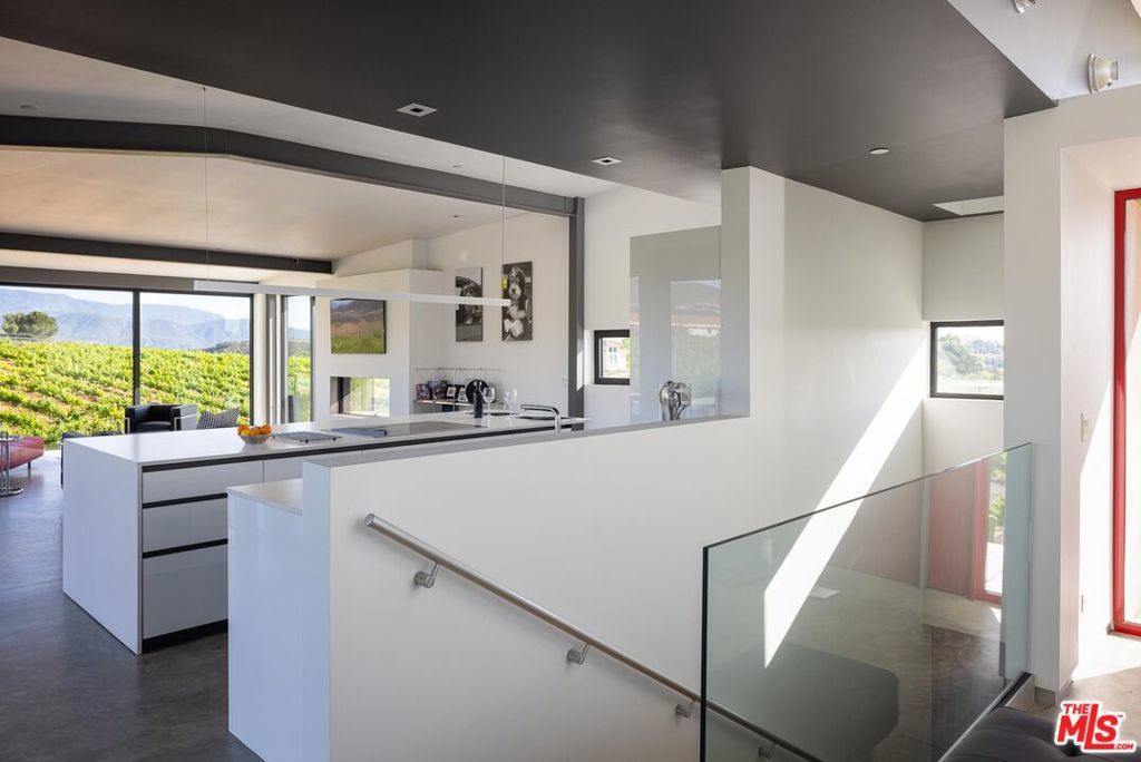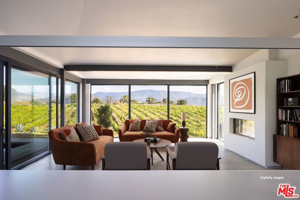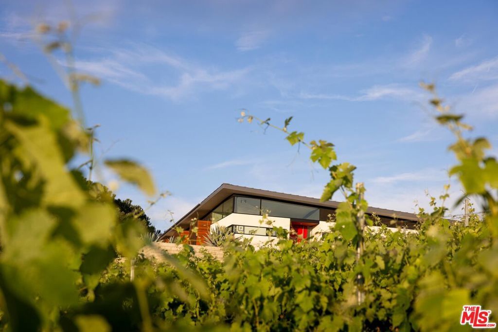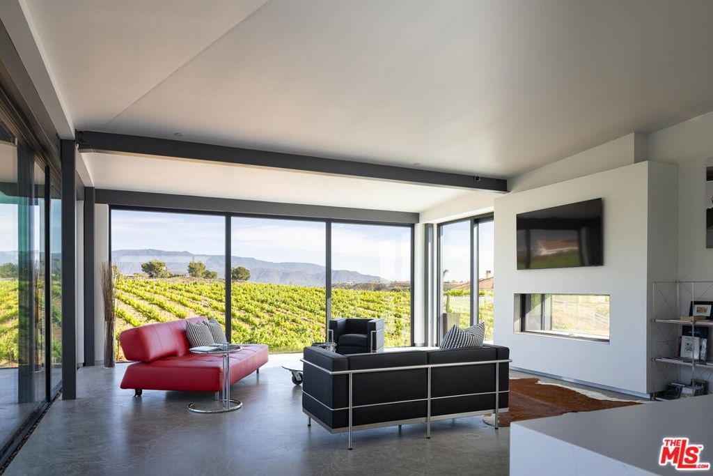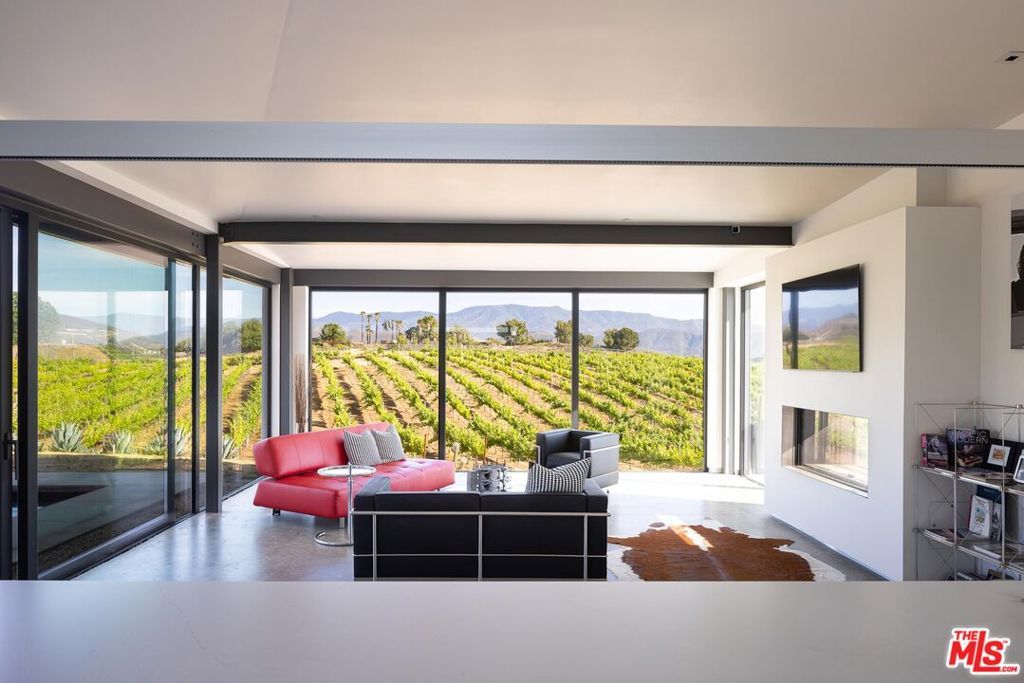 An incredible modern architectural home with income producing vineyard, in the heart of Temecula Wine Country. The Kite House, designed by Southern California-based architecture firm, Architects Magnus, was built using fire resistant hybrid construction methods with a high strength steel frame, and sustainability in mind with a standing seam metal roof under a 10kw solar system. All of the interior fixtures and appliances are premium quality and mostly imported; from the commercial grade aluminum door frames with solid core door panels, skylights, Duravit bathroom cabinets, and ORTAL tunnel fireplace (all imported from Germany), the faucet hardware is Hans Grohe, and the kitchen is all Miele (combo / steam oven, built-in coffee machine, fridge, dishwater and induction cooktop). The kitchen countertops are custom no-seam Silestone, made in Italy. The hydronic a/c system is custom made from the Italian company, Messana. Throughout the home you find Lutron lighting, and each bedroom has a commercial grade lift & slide door and window system from Reynaers, designed in Belgium. Head outside to the Pentair mineral pool and jacuzzi with propane and electric heater, and low voltage landscape lighting on photocell. Everything from the coffee machine, a/c system, lighting and pool systems can all be controlled via an app. And then of course you are surrounded by your own vineyard, 'Moto Vino' (valued as a $600k+ business, conveying with the sale of the home) that was developed by Drake Enterprises of Temecula, utilizing efficient machine harvesting and is fully OSHA compliant with service roads, filter station and drip irrigation (3.3 acres of Syrah, and 0.5 acres of Grenache Blanc vineyard that generates $40-$50k in revenue/year for another projected 20+ years). This is an incredibly unique offering of Southern California modern architecture meets vineyard that was planned and developed in-tandem to maximize the 4.88 acre properties view orientation, grape yields and functionality.