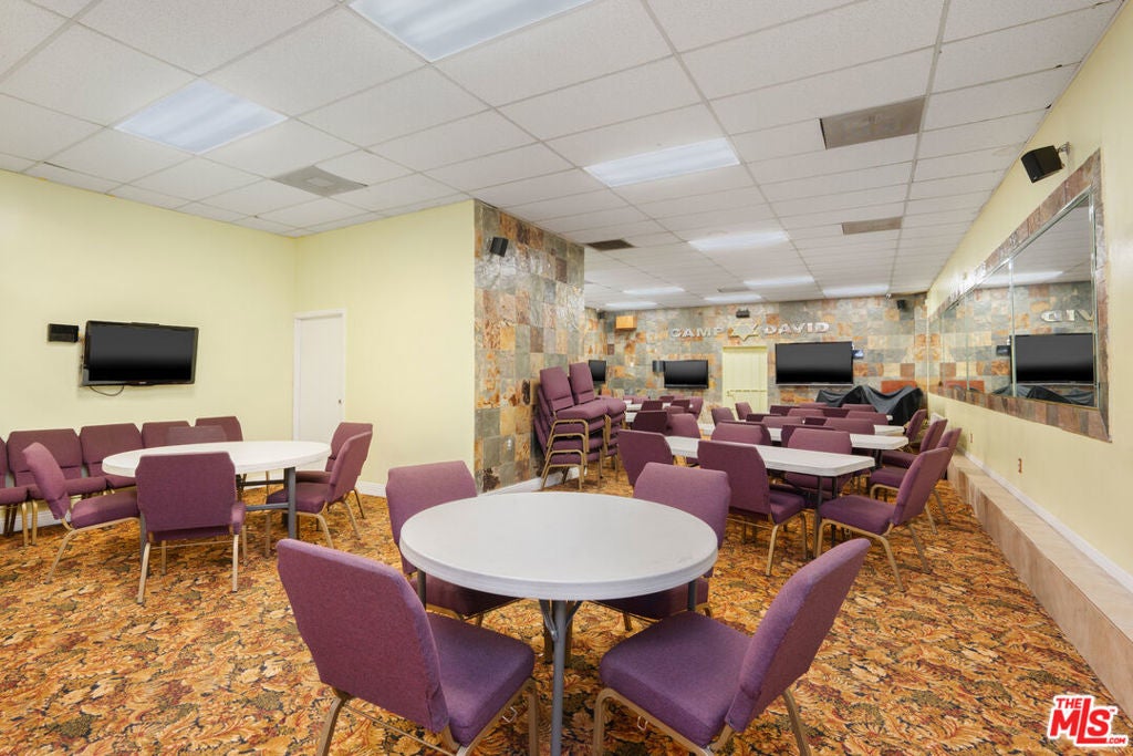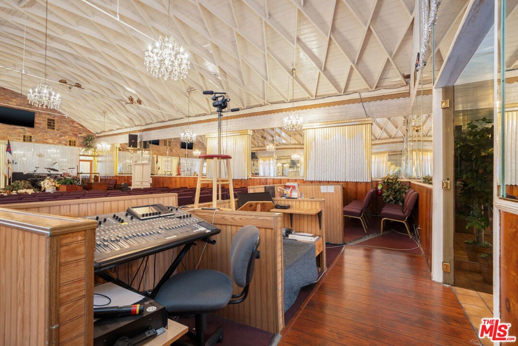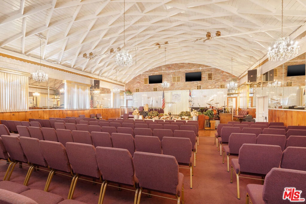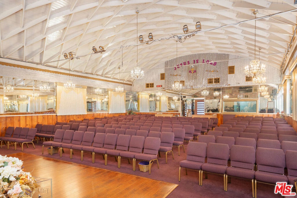The Worship Center was renovated & designed to be a grand and inspiring sanctuary. Soaring vaulted ceilings create an open, light-filled atmosphere, and elegant crystal chandeliers add a touch of sophistication and reverence. The sanctuary comfortably accommodates approximately 225 congregants. At the front of the sanctuary, the thoughtfully designed pulpit provides space for a full choir & band, ideal for worship services and special events. It is fully equipped with a professional sound system, sound booth, and musical instruments, ensuring exceptional acoustics and seamless production for services, ceremonies, and events. An impressive baptismal pool is showcased behind a glass display that enhances the space's spiritual presence. There is a Fellowship Hall that provides a highly functional and versatile gathering space with wall-mounted televisions, seating for about 100 guests, and a fully equipped commercial kitchen. The hall is a perfect venue for celebrations and community events.Endless multifamily development potential with valuable zoning incentives, including State Enterprise Zone, Housing ElementSites, and Transit Priority Area designation, just minutes from SoFi Stadium and Intuit Dome. Professional photos Tuesday1/20