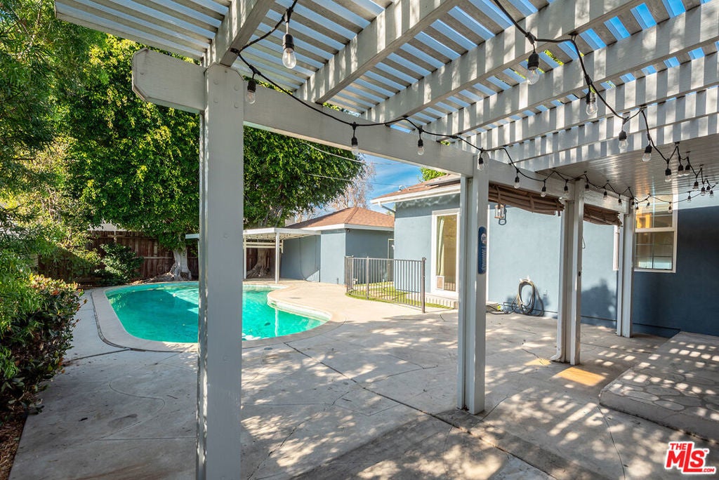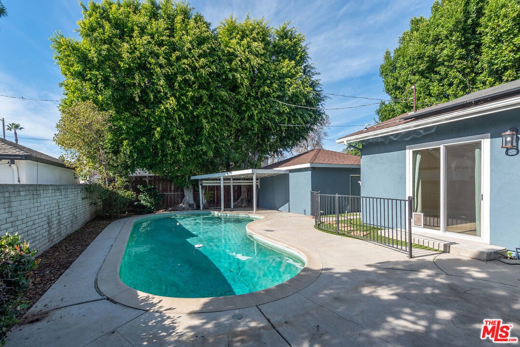 This charming pool home is located in a COVETED Sherman Oaks neighborhood known as Valleyheart Glen - A community celebrated for its welcoming small-town feel, where you'll still find kids hosting lemonade stands on the corners. Situated on a quiet, tree-lined side street, this 3-bedroom, 3-bath residence blends classic mid-century character with modern upgrades for an ideal Southern California lifestyle. The inviting interior features a living room with hardwood floors, original front windows, and a classic brick fireplace; which is complemented by a formal dining room perfect for entertaining. A welcoming front porch sets the tone for this warm and timeless home. The eat-in kitchen is equipped with stainless steel appliances and a walk-in pantry, ideal for both everyday living and hosting guests. The generous primary suite addition boasts high ceilings, a walk-in closet, and sliding doors that open directly to a private backyard with swimming pool. A detached two-car garage with alley access, offers possible ADU potential. Notable upgrades include a newer HVAC system, upgraded electrical panel, some newer double-pane windows, tankless water heater, and leased solar panels; delivering comfort, efficiency, and significant annual energy savings. Situated within the Dixie Canyon Elementary School and Louis Armstrong middle school districts, and just minutes from Ventura Boulevard, shopping, dining, and local amenities, this home offers the perfect balance of privacy, convenience, and classic Sherman Oaks charm.
