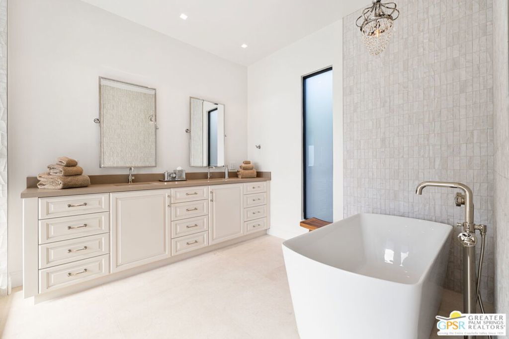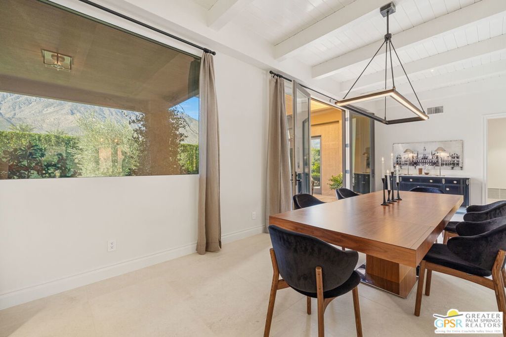 Now offered at an exceptional new price, this fully reimagined net-zero residence delivers a rare combination of design, performance, and long-term value in an ultra-quiet South Palm Springs setting. Thoughtfully renovated from the roof down, the 3 bedroom, 3.5 bath home offers next-generation living with every surface and system carefully upgraded for comfort, efficiency, and peace of mind. Inside, high ceilings with exposed beams and Turkish limestone flooring create a warm yet refined modern aesthetic. Level-5 smooth walls, new baseboards, and updated finishes throughout give the home a clean, gallery-like feel. Walls of glass enhanced with 3M security film provide privacy, energy efficiency, and protection while maintaining natural light. The gourmet kitchen features custom wood cabinetry, Brazilian quartzite countertops, and a premium Thermador appliance suite including double ovens, induction cooktop, wine refrigeration, and a 5-stage reverse osmosis system. Each of the three ensuite bedrooms offers custom walk-in closet buildouts and beautifully reimagined baths with stone surfaces and polished nickel fixtures. Behind the walls, the home is engineered for the future. Two 22-SEER heat pump HVAC systems with air purification, dual heat pump water heaters, whole-house filtration and softening, and fully app-controlled systems create effortless living. A newly installed owned solar system with Tesla battery powers the home as a fully electric, fossil-fuel-free residence with dual EV charging. The pool has also been updated for efficiency, completing a property where design meets performance at every level. A compelling opportunity to own a turnkey, net-zero luxury homenow positioned for immediate interest.