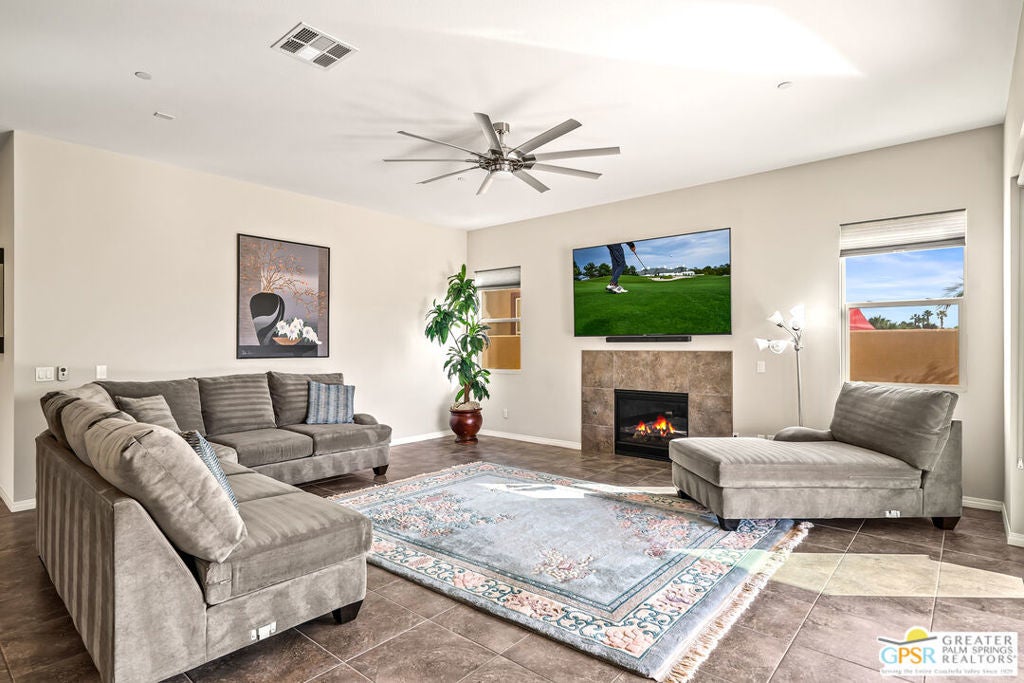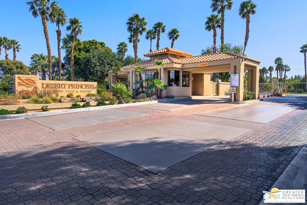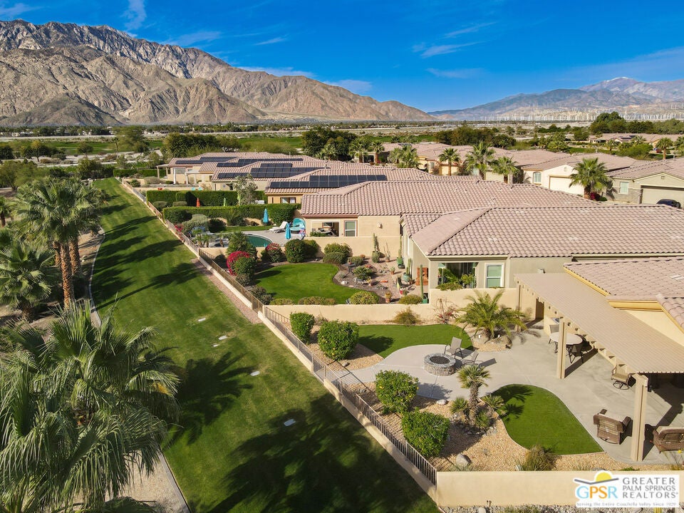This is the largest of the Arroyos at Desert Princess models, VILLA 3, located on staggered lots so the patios are not line with the neighbors. Incredible SW Mountain views from the living room, kitchen, and patio. Extensive improvements to the exterior living spaces with a full house-length shade pergola with ceiling fans over an expanded patio. The back yard is enclosed with a fence and gate. New walkways and landscaping with a permanent gas-plumbed fire pit complete the outdoor living space. The south facing backyard allows you to enjoy outdoor living on your protected patio, even on some of the desert's most breezy days. This home has tile floors throughout, an open kitchen, granite counter tops & stainless-steel appliances, upgraded door hardware, laundry room w/sink, plus a two-car garage w/ an enclosed golf cart bay used as office/storage room. This home backs to the Arroyos with almost 4 miles of waking trails, and across the street from one of the community's largest pools providing you direct pool access within steps from your front door, saving you personal pool expenses. There are 35 community pools, an HOA owned 27-hole golf course, lighted tennis courts, pickle ball courts, fitness center, restaurant, full-service spa, 24/7 guard gate, plus more. And you own the land!