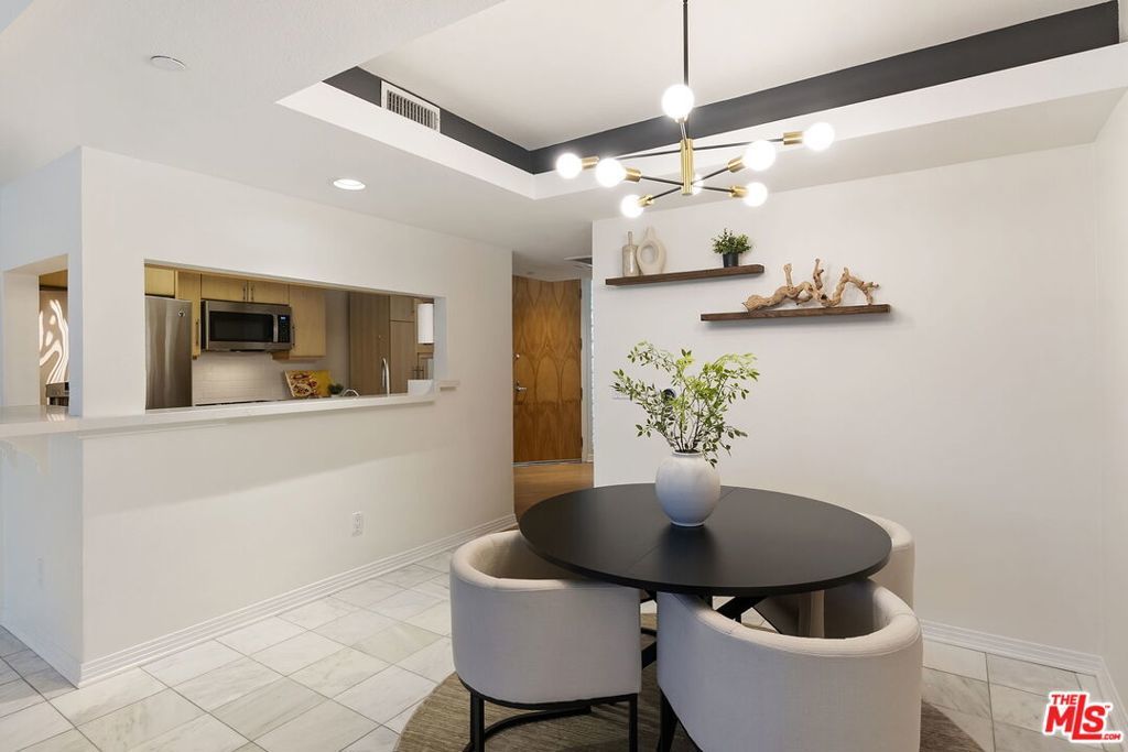 Located in a desirable central Brentwood location, this private and well appointed 2-bedroom, 3-bath townhouse style condo offers a spacious, comfortable layout spanning 1,576 square feet. The upper level features an open-concept design with a modern kitchen equipped with stainless steel appliances, a dedicated dining area, and a generous living room with marble floors, city and mountain views, a gas fireplace, and a large guest powder room. A sun-drenched glass-enclosed bonus space makes the perfect office or reading nook. Downstairs, both bedrooms offer privacy and comfort. The expansive primary suite includes a sitting area, two closets (including a walk-in), and en-suite bath with a soaking tub and separate shower. The second bedroom also enjoys its own full bath. This level also includes a side-by-side laundry area, extra storage, and direct access to a private outdoor patio. Additional amenities include Nest thermostats on each level, side-by-side parking spaces, ample guest parking, and a dedicated storage cage. There are dual entrances, one on each level, providing added flexibility and convenience for daily living, guests, or a work-from-home setup. The secure building offers resort-style living with a pool, spa, sauna, and gym. Ideally located near UCLA, the 405, top-rated schools, and Brentwood's premier shops and dining.