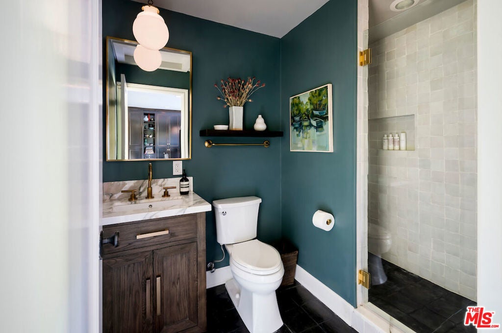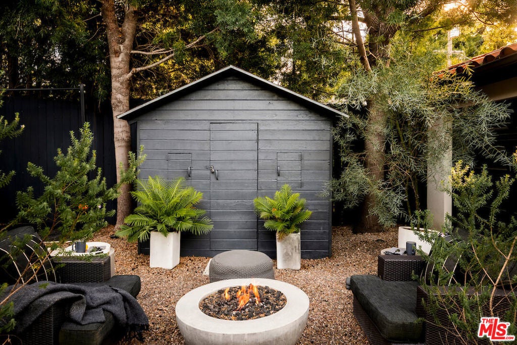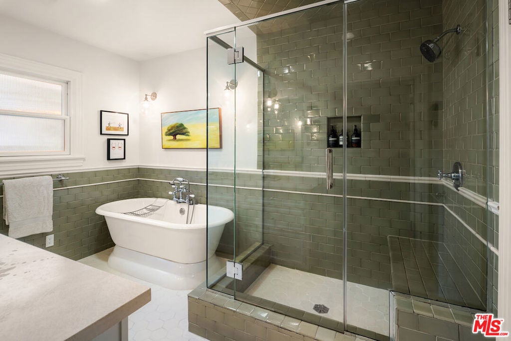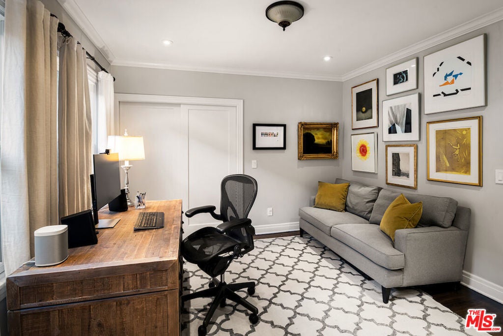 Situated in the highly sought-after Brookside/Hancock Park neighborhood, this distinguished residence embodies timeless elegance enhanced by thoughtful modern updates. The three-bedroom, two-and-a-half-bath main home, complemented by a beautifully appointed rear guest house, immediately impresses with its exceptional craftsmanship and architectural detail. Rich hardwood floors, crown molding, coved ceilings, graceful curved entryways, custom window treatments, and designer paint finishes by Farrow & Ball and Donald Kaufman create a refined and cohesive aesthetic throughout. The intelligently conceived floor plan offers a seamless balance of formal entertaining and comfortable daily living, with private bedroom quarters thoughtfully separated from the principal living areas. A welcoming foyer opens to an expansive living and dining room, anchored by a bespoke marble-topped buffet and alabaster wall sconces, an elegant setting for gatherings both casual and formal. Original double-glass swing doors lead to the heart of the home: a generous chef's kitchen featuring a substantial center island with seating, abundant counter and pantry space, a dedicated hutch, classic two-tone Shaker cabinetry crowned with marble countertops, and a suite of premium stainless-steel appliances, including a Viking range, Sub-Zero refrigerator, and Miele dishwasher. Adjacent, the light-filled family room boasts soaring 10-foot ceilings, custom built-in bookcases, and expansive rear windows, with French doors opening to multiple outdoor living and dining areas within the private garden. The serene primary suite is a true retreat, offering dual custom walk-in closets and a full wall of artisan cabinetry. The spa-inspired bath features a separate soaking tub, an oversized shower, and an expansive vanity with generous storage. Sliding glass doors connect the suite directly to the newly landscaped grounds, framed by mature hedges, curated garden beds, and a variety of fruit trees lemon, apple, orange, and lime creating an inviting environment for both relaxation and cultivation. Raised planters provide ideal space for vegetables, herbs, or flowers. Outdoor living is further enhanced by a wood deck with pergola off the family room and a firepit lounge near the guest house, providing multiple seating vignettes perfect for entertaining or quiet enjoyment. The detached, newly renovated guest house offers exceptional versatility, featuring new hardwood flooring, a refined three-quarter bath with an oversized Zellige tile shower, integrated Murphy bed within custom cabinetry, updated heating and air conditioning wall unit, refrigerator/freezer, dining area, and a dedicated office nook, ideal for guests, a creative studio, or private workspace. Centrally located between Larchmont Village and the La Brea corridor, with their acclaimed dining, shopping, weekly farmers markets, and just moments from the Los Angeles Memorial Park and Library, this exceptional property presents a rare opportunity to enjoy refined, friendly living in one of the city's most coveted enclaves.