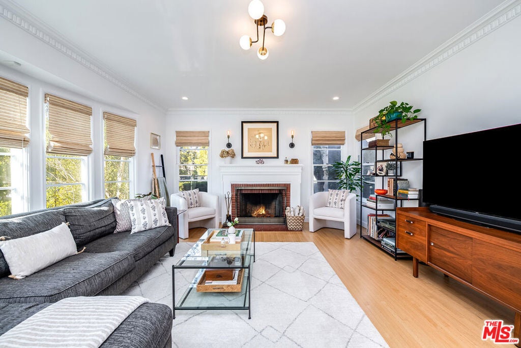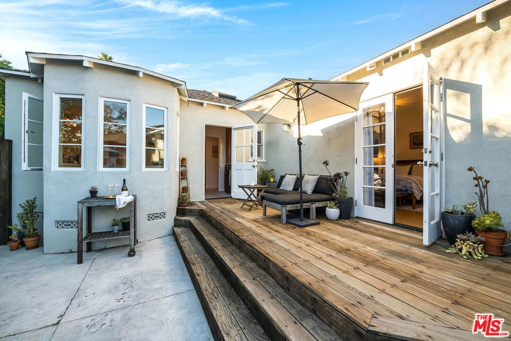 Welcome to this enchanting Crestview home, where classic charm meets modern convenience. Nestled on a peaceful, tree-lined street in Beverlywood's desirable Crestview area, this 2-bedroom, 2-bath residence has been fully remodeled to blend timeless elegance with contemporary amenities.As you step inside, you're greeted by large, sunlit rooms adorned with real plaster crown molding, coved ceilings, and elegant arched doorways, creating a harmonious blend of classic design and modern comfort. The inviting living room features a cozy wood burning fireplace with its original mantle, adding warmth and character to the space.The beautifully updated Kitchen features Quartz countertops and marble backsplash, Stainless Steel appliances and a lovely Breakfast nook for your casual mornings or afternoon teas with a relaxing view of the generous backyard.The spacious primary suite is a true sanctuary, complete with a luxurious en-suite bath and a generous walk-in closet. The second bedroom is equally spacious and versatile, perfect for family or guests.Beyond the main living areas, the property also features a delightful backyard retreat. Enjoy a large Al Fresco dining area, a cozy fire pit, and an elevated deck area extending your living space outdoors, creating a relaxed vibe to enjoy California's beautiful weather.Additionally, the home includes a dedicated laundry area, a finished two-car garage with floor to ceiling built-in Storage and work bench cabinets in addition to a permitted detached bonus room of approximately 160 square feet, ideal for a home office, gym, or guest suite.Situated in the vibrant Crestview neighborhood, this home offers convenient access to houses of worship, Culver City, Beverly Hills, and major freeways leading to DTLA and LAX. This is a rare opportunity to own a home that beautifully marries classic charm with contemporary living.