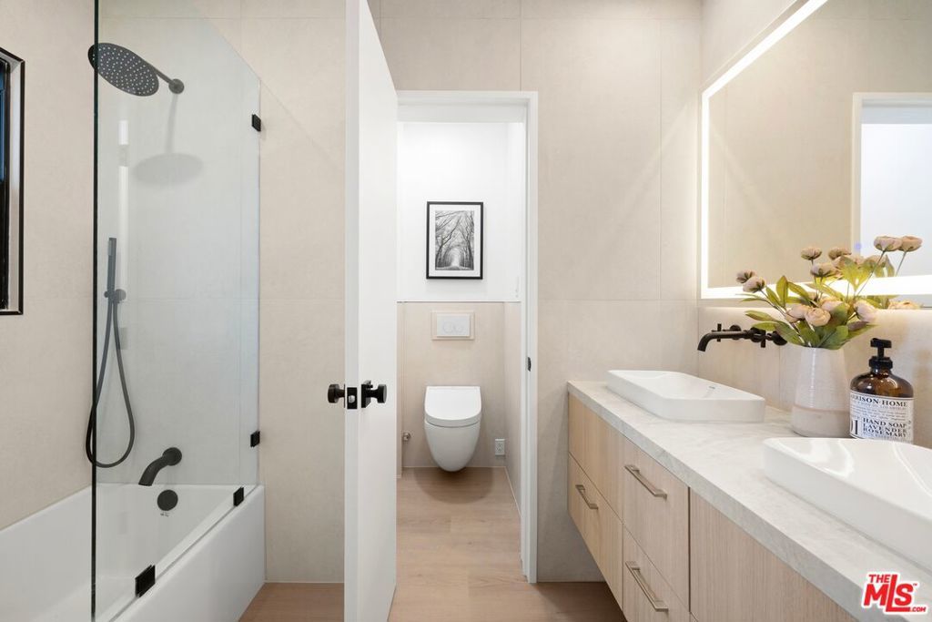 Exquisitely updated contemporary ranch home fully redesigned for modern living and set behind gates. This complete gut out remodel features soaring ceilings, skylights, and expansive open-concept living spaces filled with natural light. Fully modernized while preserving the home's original architectural integrity, the property offers a true turnkey experience. Designed for entertaining, the home includes a rare half-circle driveway and a stunning designer kitchen with custom Italian cabinetry, Taj Mahal counters, built-in filtration system, and butler's pantry with wet bar. Smart home upgrades include a whole home security system, smart thermostat, smart mirrors, dual sound system, and provisions for a robotic vacuum station. Additional highlights include a Japanese-style bathroom system, sleek electric fireplace, and generous built-in storage. The residence offers 3 bedrooms, 2 bathrooms, a 2 car garage with additional spaces within the gated driveway, and plenty of storage. The outdoor living features a heated resort style pool, expansive seating areas, and a private outdoor shower, ideal for year-around enjoyment. Prime location near Ventura Blvd shopping and dining, Balboa Golf Course, Balboa Recreation Center, and convenient access to the 101 & 405 freeways. Be the first to enjoy this sophisticated, fully updated mid-century home.