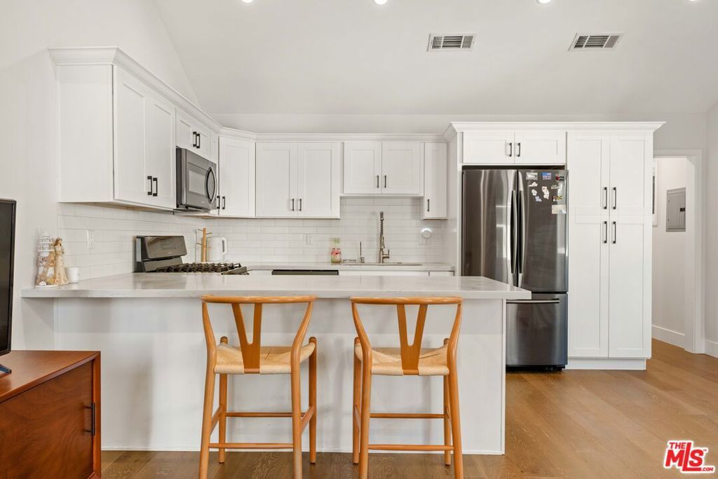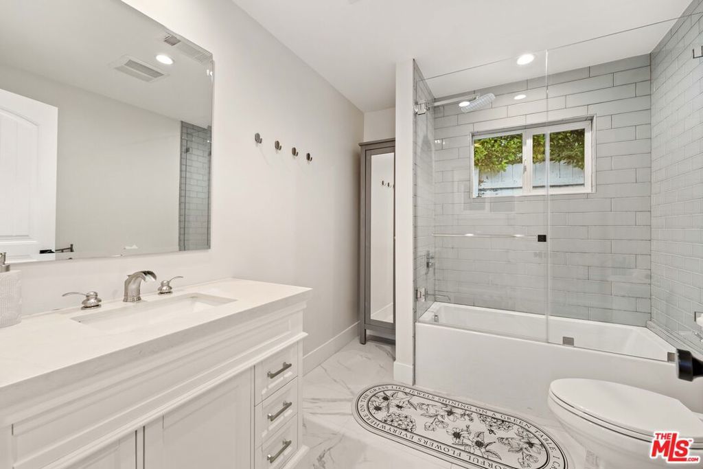 This beautifully renovated single story farmhouse is located in the heart of Colfax Meadows, one of Studio City's most desirable neighborhoods, and is zoned for both Carpenter Avenue Elementary and Colfax Elementary Charter. A thoughtfully designed layout creates an open living area filled with natural light and a comfortable, inviting feel. The kitchen is modern and functional, featuring a stone island, pantry wall, updated appliances, and a dining area that works just as well for casual meals as it does for entertaining. Two en suite bedrooms sit at the front of the home, while the primary suite is tucked away at the rear, offering a quiet and private retreat. A conveniently placed powder room sits near the main living space. A major highlight of the property is the fully permitted backyard ADU, complete with its own kitchen, bathroom, and bedroom. This flexible space is ideal for guests, a home office, or potential rental income. Additional features include plantation shutters, a dedicated laundry room, ample storage, low maintenance artificial turf with an automatic drip system, and a tankless water heater. Set just minutes from popular restaurants, shops, and everyday conveniences, this Colfax Meadows home offers comfort, flexibility, and exceptional value in a prime Studio City location.
