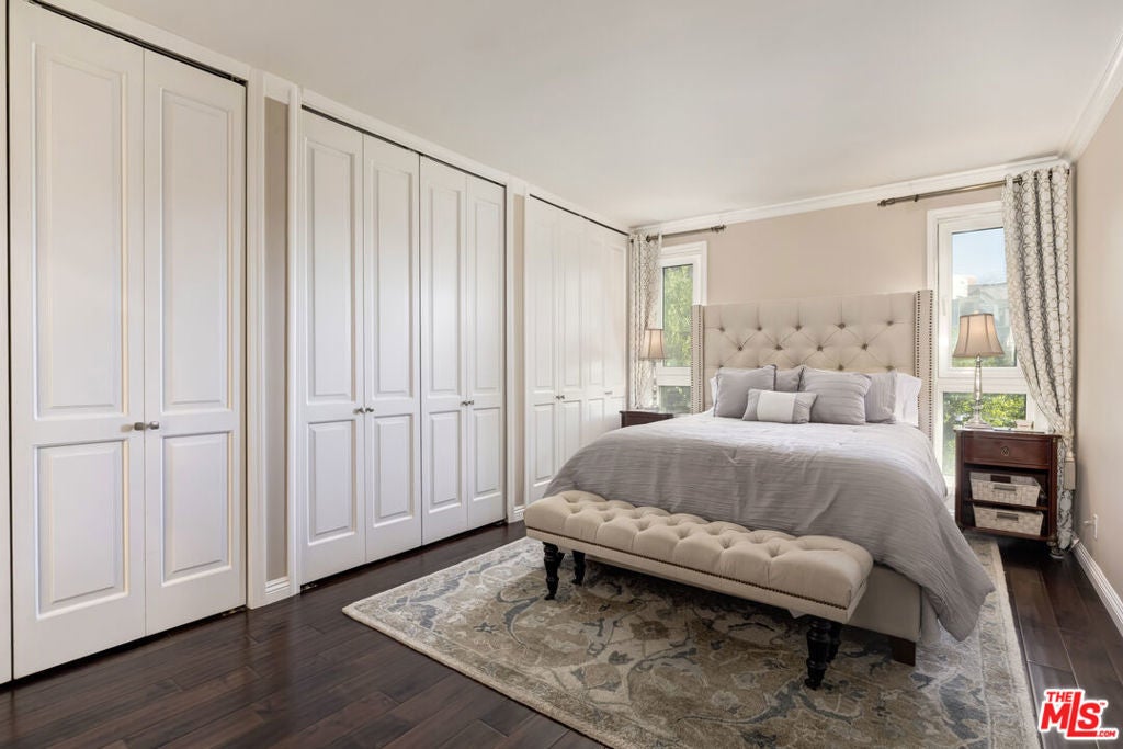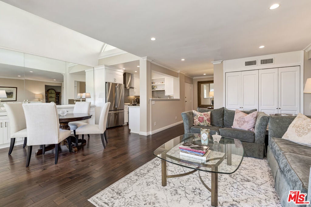 Grand penthouse residence with exceptional flow, ideally located in the heart of Brentwood, just off San Vicente Blvd and steps from shops, restaurants, and the beloved Brentwood Farmers Market. This inviting home is offered fully furnished, including linens, dinnerware, and kitchen essentials, providing a truly turnkey living experience. The spacious and welcoming living room features a remote-controlled gas fireplace and floor-to-ceiling window that fills the space with natural light. It opens seamlessly to the elegant dining area, highlighted by high coved ceilings, additional windows, and a sliding door leading to a charming balcony with treetop and city views. Just off the dining room, the updated kitchen offers marble countertops, stainless steel appliances, and a glass tile backsplash. The residence features two primary en-suite bedrooms. One includes wall-to-wall closets and a refined bathroom with a shower/tub combination. The second primary suite is generously sized and offers a large stall shower along with linen cabinetry for additional storage. Throughout the unit, classic details are paired with modern comforts, including crown moldings, hardwood floors, recessed lighting, central air conditioning and heat, abundant in-unit storage, and two side-by-side parking spaces. Monthly internet, water & gas are included in the rent. Just bring your toothbrush. A rare opportunity to lease a top-floor penthouse in one of Los Angeles' most sought-after Westside neighborhoods, moments from all that Brentwood has to offer. Enjoy the best of Westside living!