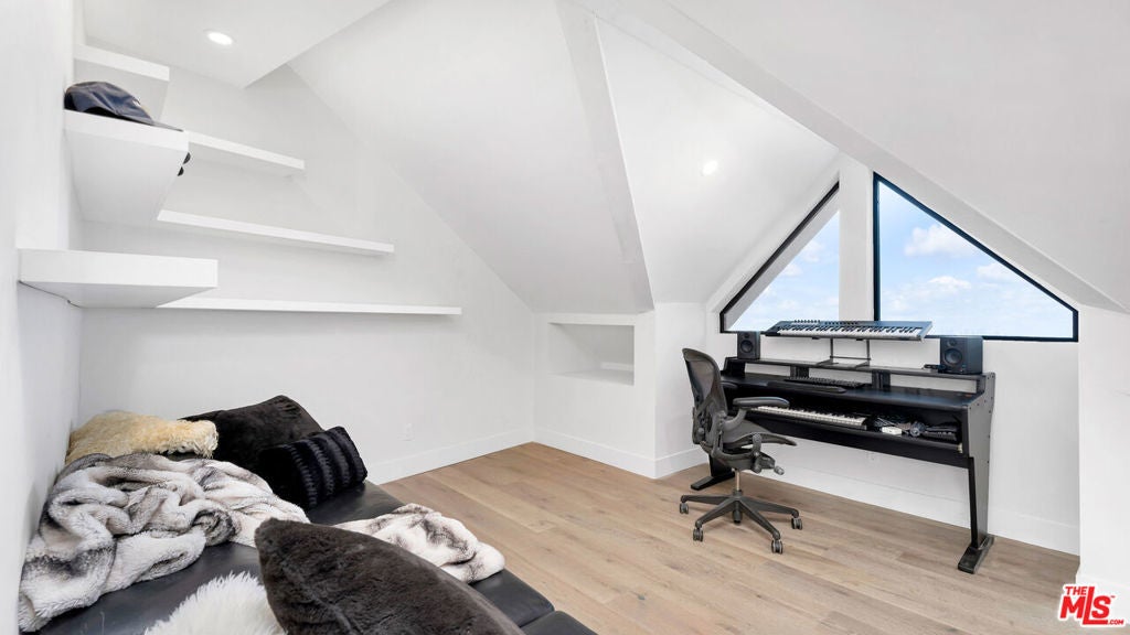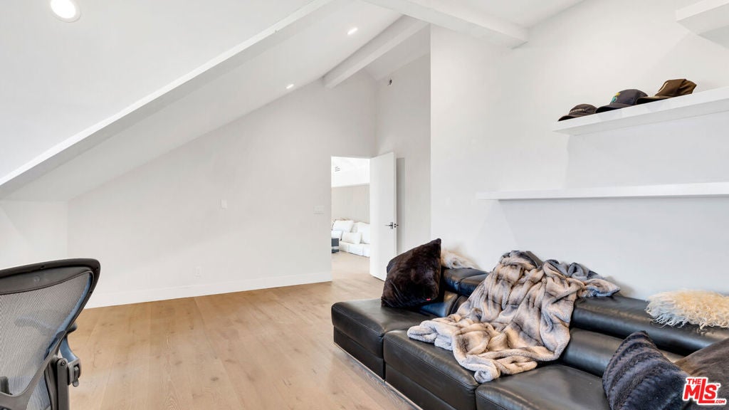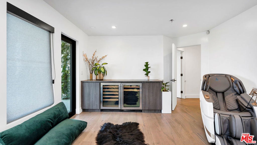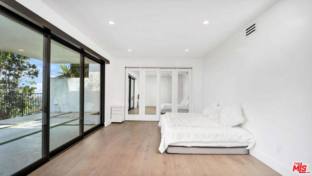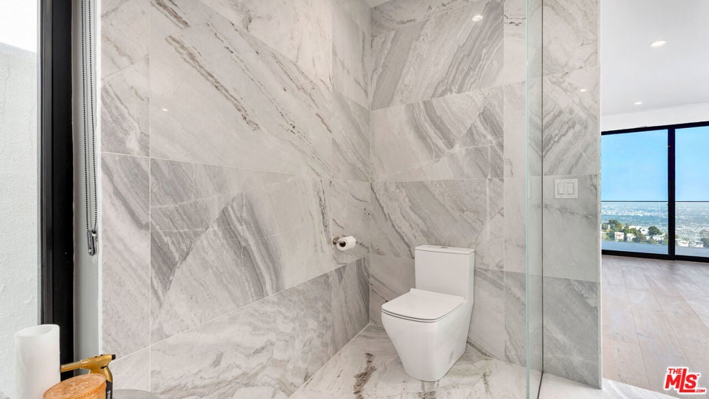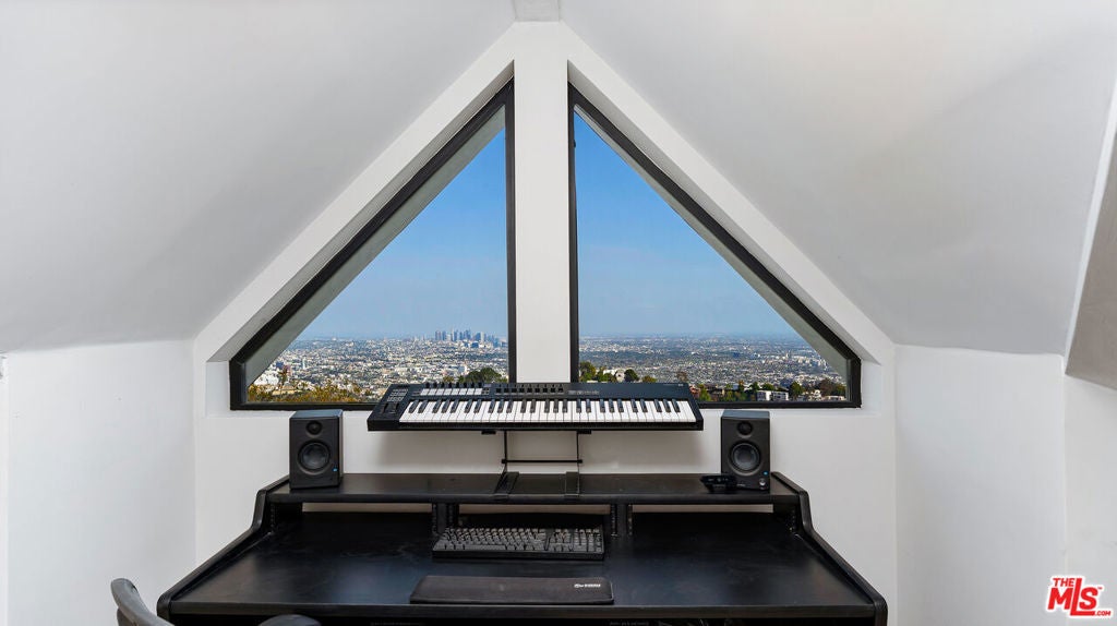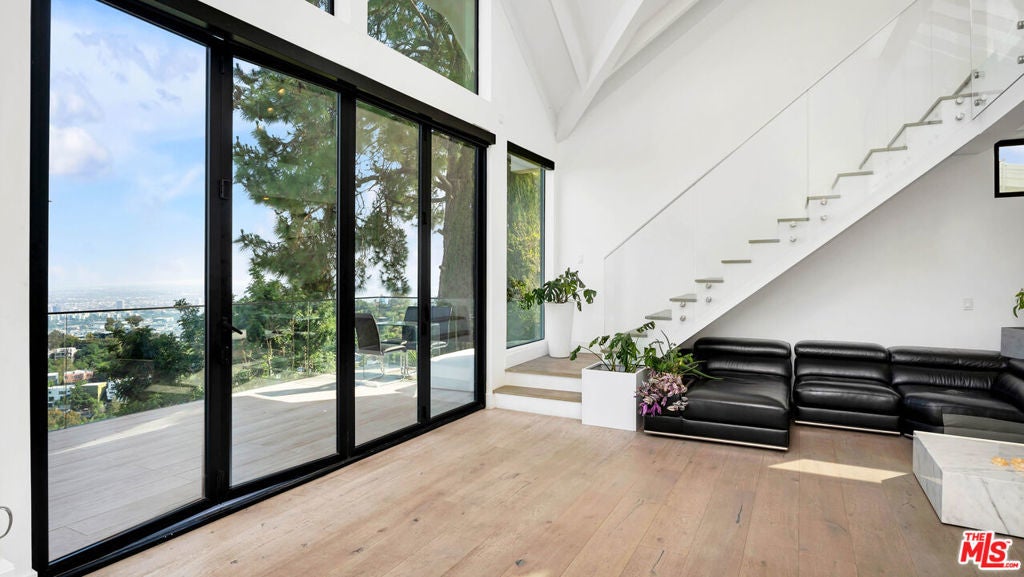 Experience sweeping jetliner views from nearly every vantage point in this recently renovated contemporary residence tucked into the Hollywood Hills. The main level showcases a grand-scale living room, a generously proportioned primary suite with five-star, hotel-quality finishes, and a chef's kitchen designed for both form and function. Framed by dual Fleetwood sliding doors, the expansive deck seamlessly extends the living space outdoors. The kitchen is outfitted with Miele and Gaggenau appliances, a built-in espresso machine, a striking 10-foot island, and abundant storage, all overlooking the living area and breathtaking city vistas.The lower level offers two spacious bedrooms and a well-appointed bath with a walk-in shower, both opening onto a full-length deck. One bedroom is currently curated as a serene spa and meditation retreat, complete with dual Osaki Platinum massage chairs. Above, the top floor features an airy loft with commanding views and a fourth ensuite bedroom ideal for guests, an office, or creative studio. Throughout the home, Hue remote color-changing lighting highlights soaring ceilings and crisp architectural lines. Situated in the highly sought-after Wonderland School District, this Laurel Canyon stunner awaits its newest resident.