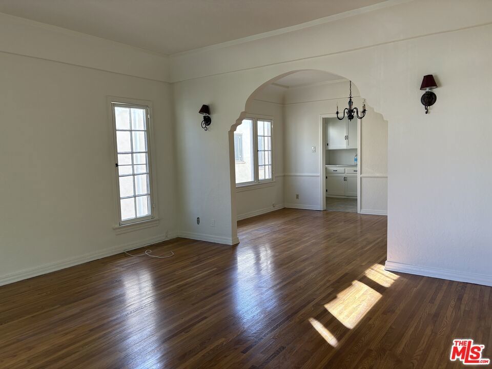 Light-filled and fabulous location! Lovely 2 bed, 1 bath upper unit in four-plex available in a fantastic spot in LA, near Pan Pacific Park and The Grove. Sitting on a relaxed, tree-lined street, this spacious upstairs unit boasts original 1930s character accents and archways, separate dining and living rooms, with hardwood floors. The 10-foot ceilings make this feel like a single-family home, with large bedrooms, a spacious kitchen with newer appliances (including a dishwasher and disposal), and in-unit washer/dryer and utility sink. In addition there are two tandem off-street parking spaces, including one covered garage. Owner pays for water/sewer and gardener.
