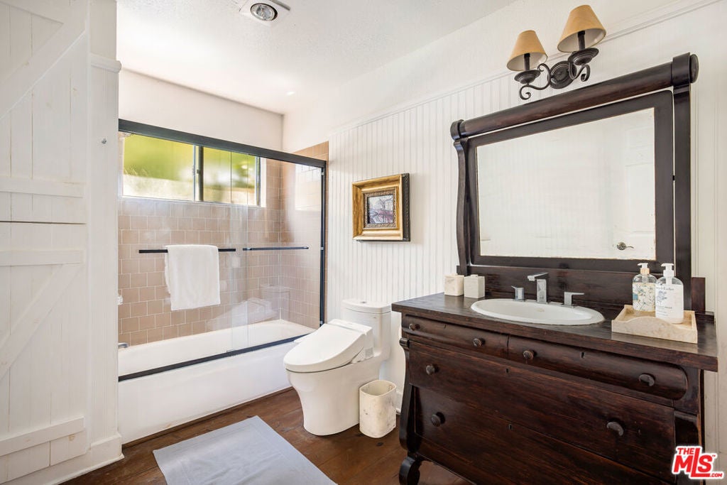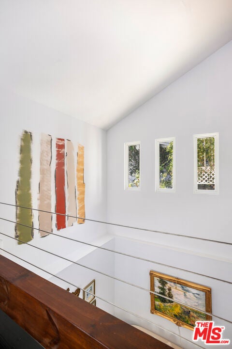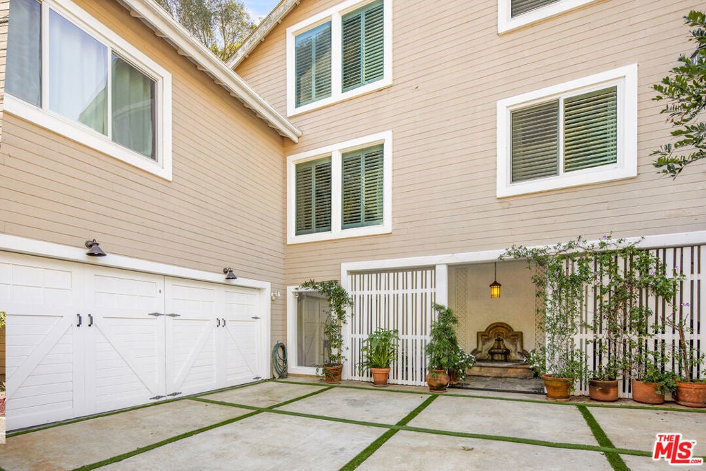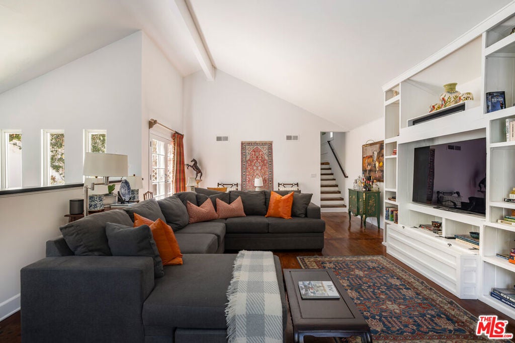 Move-in ready, Modern systems, Gated with two car garage and room for additional cars and Prime access to the Westside. A rare combination at this price point. A serene sanctuary in desirable Beverly Glen. Enter through a lush, private courtyard with mature greenery and a tranquil fountain that sets the tone for this refined, impeccably maintained home. The welcoming foyer, with cedar-lined closet, leads upstairs to a sun-filled living space featuring soaring ceilings, hardwood floors, and double-paned windows with rich wood shutters. The open layout flows effortlessly into a charming dining area and gourmet kitchen, complete with custom cabinetry, hand-finished wood counters, stainless steel appliances, breakfast bar, cozy nook, abundant storage, and in-unit laundry. The main-level primary suite offers calm and comfort with generous closets, custom built-ins, and a spa-inspired bath with soaking tub, glass shower, and Toto fixtures. A striking mezzanine bridge overlooks the living room and brings you to a vaulted great room with media features and French doors leading to a private yard. Jardin-style landscaping, shaded seating, and a peaceful outdoor area creates a true retreat. Two additional bedrooms; one with a balcony, another with dramatic timber ceilings that opens directly to the yard and share a beautifully updated bath with artisan wood finishes. Additional features include a spacious two-car garage with storage, central vacuum, and easy access to Beverly Glen Center's restaurants, coffee, and amenities. Minutes to both Westside culture and Valley convenience. Note: Drapes, and Dining room & kitchen chandeliers, are excluded.