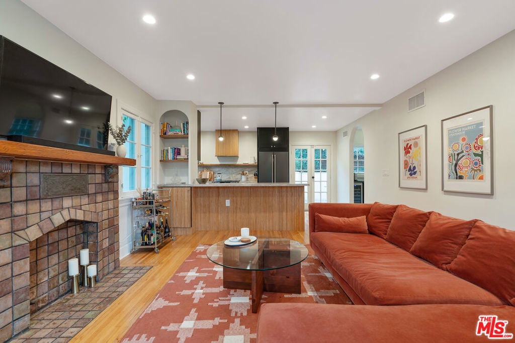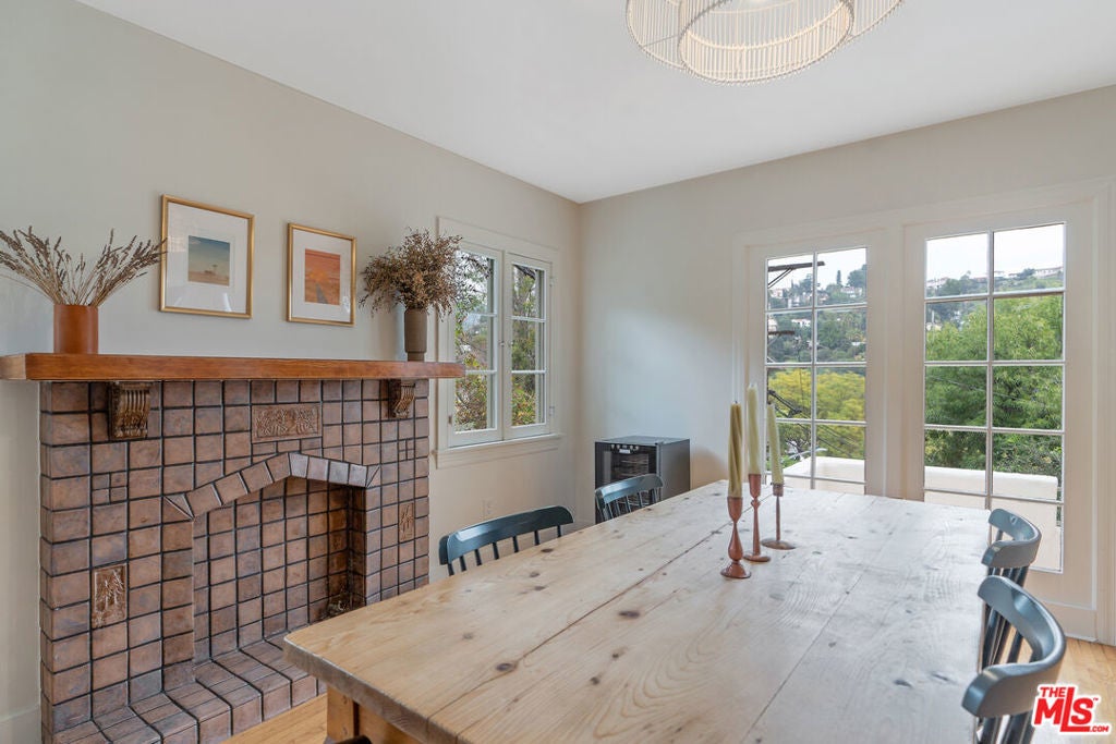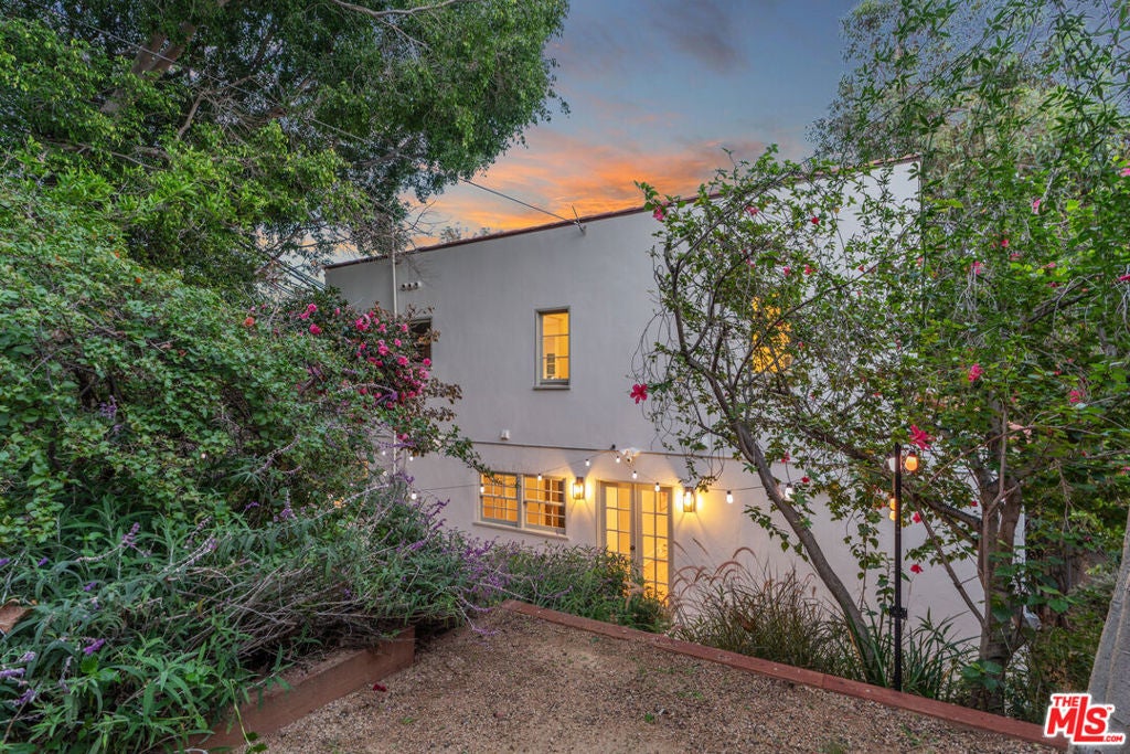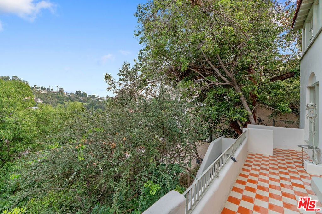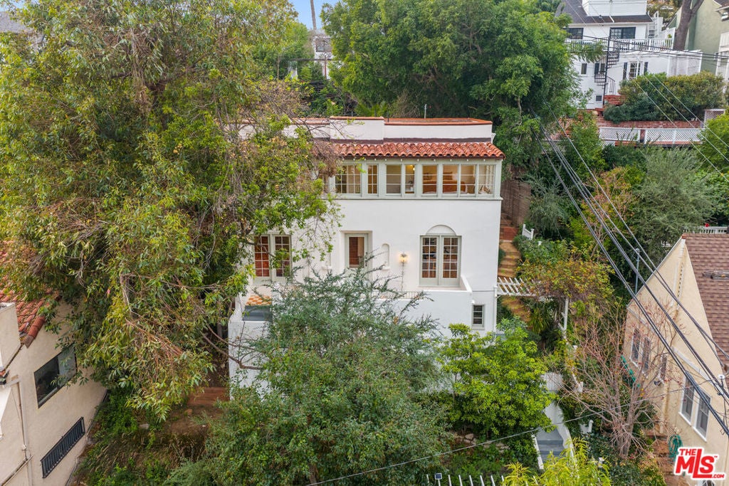 Set in the hillside of Beachwood Canyon, this thoughtfully restored Spanish Colonial Revival residence captures the appeal of its 1924 origins while embracing modern functionality. The home's original bones immediately stand out, from beautiful old windows and Batchelder-style tiled fireplaces to graceful archways and built-in details that reflect the craftsmanship of another era. Positioned high enough to enjoy sweeping views yet still connected to the neighborhood and city below, the home offers a rare sense of calm. Sunrise views from the bedrooms unfold across the canyon, creating a peaceful morning ritual. The thoughtful layout creates a seamless flow to the interior while emphasizing light, space, and views throughout. The interior features a bright, open layout with refinished white oak flooring, restored original windows and doors, and fresh interior and exterior paint. Recessed lighting enhances the main living areas and primary suite, while curated fixtures and architectural details add warmth. The kitchen blends performance and design with Taj Mahal leathered quartzite countertops, new soft-close cabinetry, and gorgeous Energy Star appliances, including a GE Cafe range, refrigerator, dishwasher drawers, and an LG washer and dryer. A vintage Murano chandelier adds a distinctive entry moment. Major systems have been updated, including a new roof with a 20 year warranty, a two-zone energy-efficient HVAC system with smart thermostats, an energy-efficient electric water heater, updated plumbing and electrical, a new electrical panel, foundation bolting and structural reinforcement, and a newly lined sewer main with a 25 year guarantee. Outdoor living extends the home's design with French drains, drought-tolerant landscaping with drip irrigation, exterior utility hookups for a future patio kitchen, a custom front entry gate, and a custom mahogany garage door. The terraced garden and patio create a private backyard oasis. Located in a scenic hillside setting with convenient access to Gelson's, The Oaks Market and Cafe, dining, cultural destinations, and outdoor amenities, this residence offers classic Los Angeles architecture enhanced by thoughtful upgrades, views, and a seamless indoor-outdoor connection.