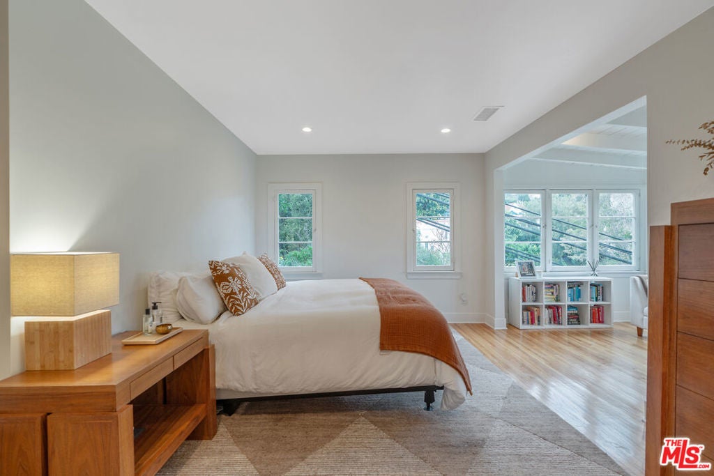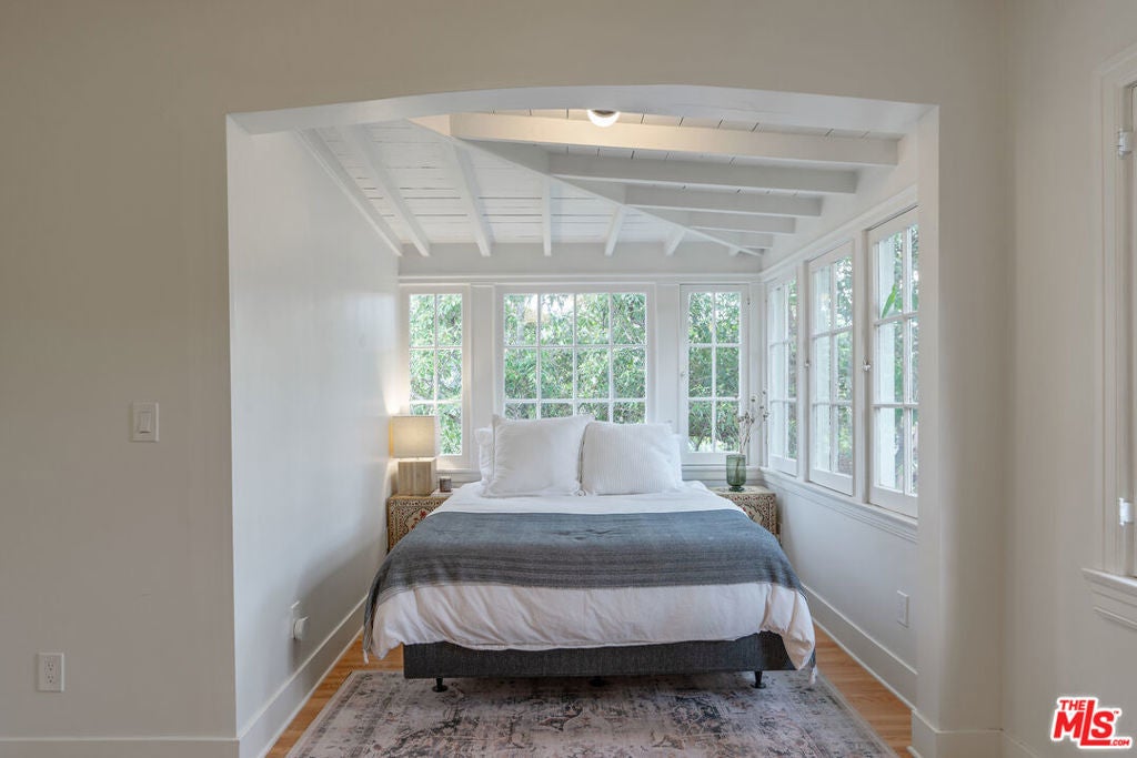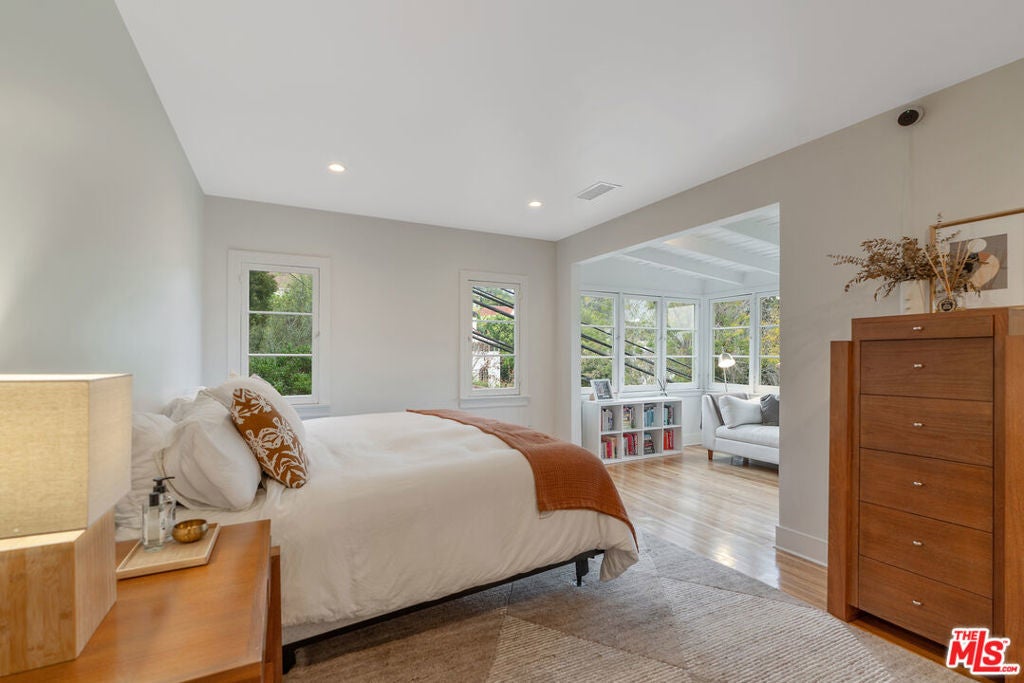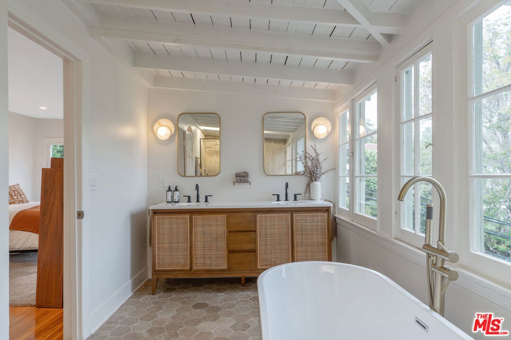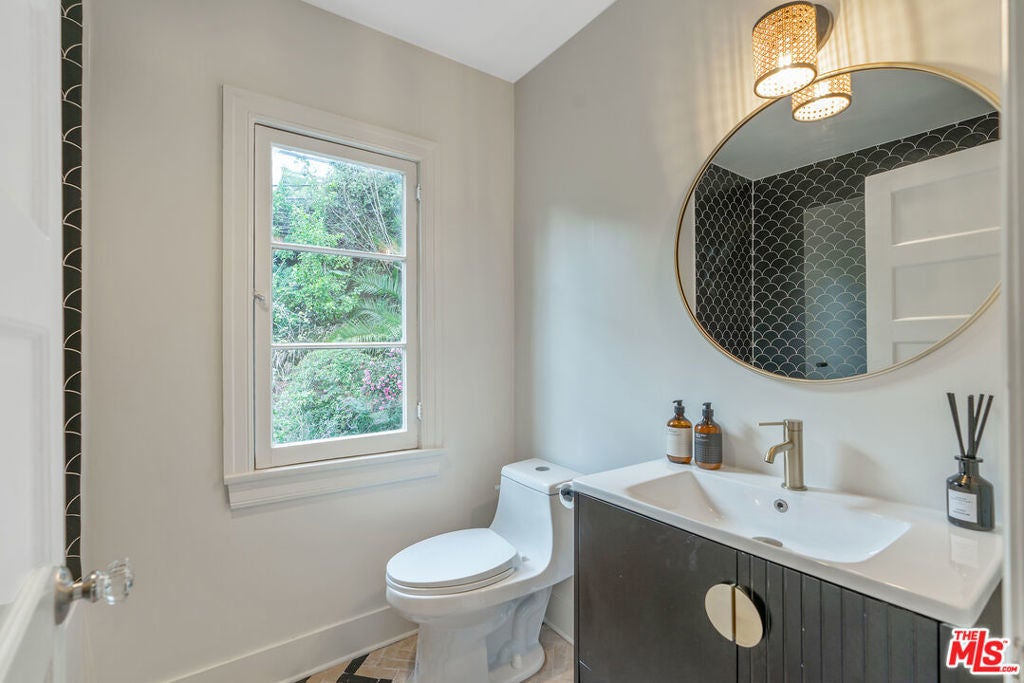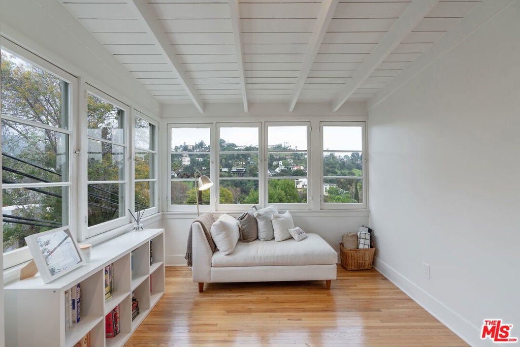 Set in the hillside of Beachwood Canyon, this thoughtfully restored Spanish Colonial Revival residence captures the appeal of its 1924 origins while embracing modern functionality. The home's original bones immediately stand out, from beautiful old windows and Batchelder-style tiled fireplaces to graceful archways and built-in details that reflect the craftsmanship of another era. Positioned high enough to enjoy sweeping views yet still connected to the neighborhood and city below, the home offers a rare sense of calm. Sunrise views from the bedrooms unfold across the canyon, creating a peaceful morning ritual. The thoughtful layout creates a seamless flow to the interior while emphasizing light, space, and views throughout. The interior features a bright, open layout with refinished white oak flooring, restored original windows and doors, and fresh interior and exterior paint. Recessed lighting enhances the main living areas and primary suite, while curated fixtures and architectural details add warmth. The kitchen blends performance and design with Taj Mahal leathered quartzite countertops, new soft-close cabinetry, and gorgeous Energy Star appliances, including a GE Cafe range, refrigerator, dishwasher drawers, and an LG washer and dryer. A vintage Murano chandelier adds a distinctive entry moment. Major systems have been updated, including a new roof with a 20 year warranty, a two-zone energy-efficient HVAC system with smart thermostats, an energy-efficient electric water heater, updated plumbing and electrical, a new electrical panel, foundation bolting and structural reinforcement, and a newly lined sewer main with a 25 year guarantee. Outdoor living extends the home's design with French drains, drought-tolerant landscaping with drip irrigation, exterior utility hookups for a future patio kitchen, a custom front entry gate, and a custom mahogany garage door. The terraced garden and patio create a private backyard oasis. Located in a scenic hillside setting with convenient access to Gelson's, The Oaks Market and Cafe, dining, cultural destinations, and outdoor amenities, this residence offers classic Los Angeles architecture enhanced by thoughtful upgrades, views, and a seamless indoor-outdoor connection.