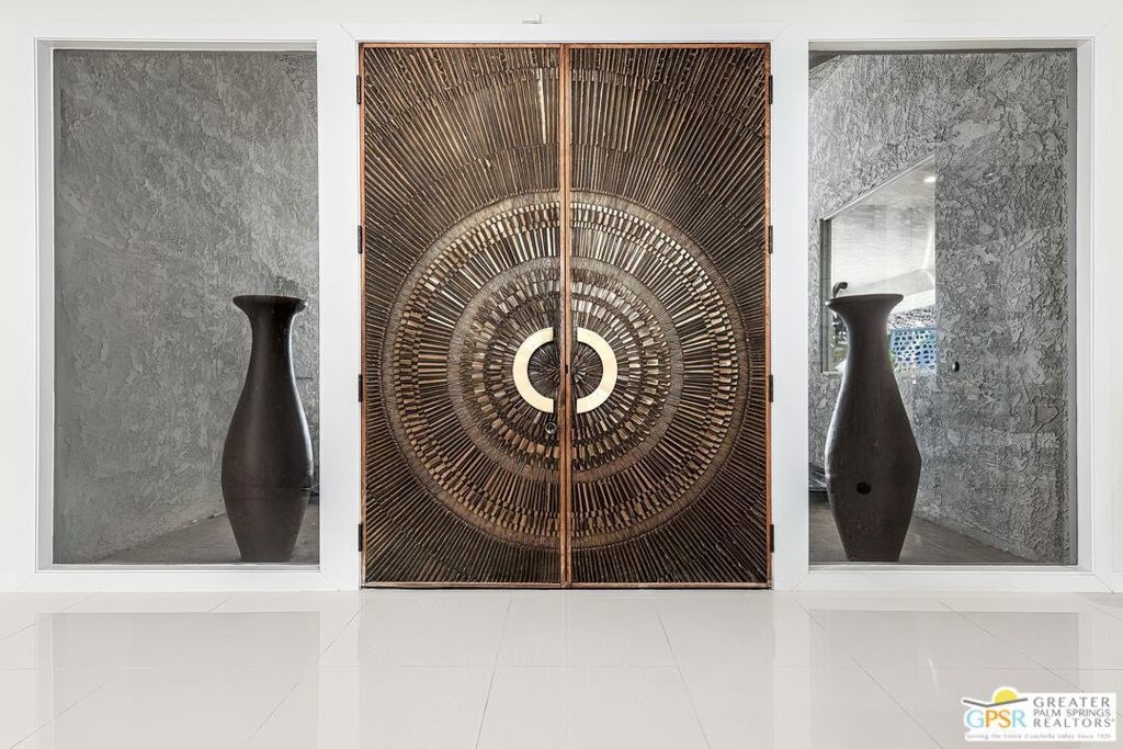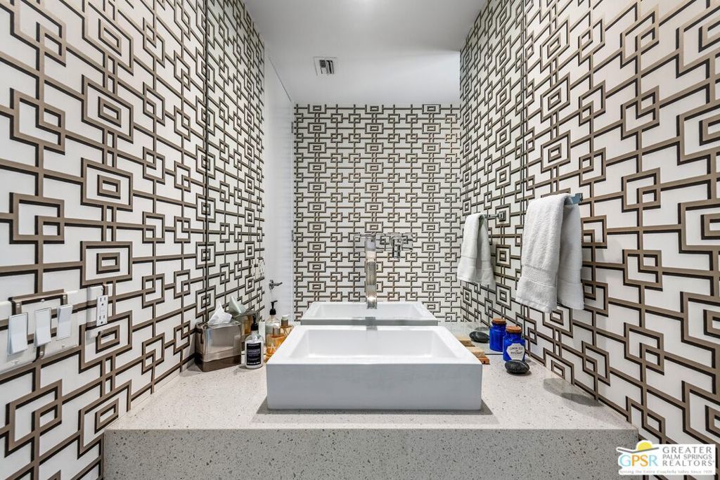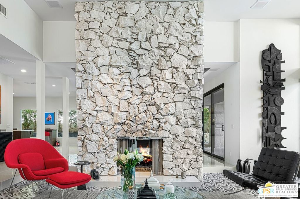 Step through the grand double-door entry into a home that feels like a warm, luxurious embrace. Set within Vista Las Palmas, this residence is one of just 12 homes behind the private gates of Los Robles, offering an exceptional sense of exclusivity and privacy. A masterfully designed open-concept layout sets the tone for sophisticated living, while the chef's kitchen shines with high-end stainless steel appliances and a sprawling island built for gathering. At the heart of the home, the sunken living room stuns with soaring vaulted ceilings and a dramatic rock fireplace that anchors the space with texture and scale. Every detail is thoughtfully curated for comfort and style from tray ceilings and designer wallpaper to a dedicated media room and built-in shelving throughout. The primary suite is a true sanctuary, offering direct pool access and a spa-inspired ensuite bath. Two guest bedrooms provide exceptional privacy, each with its own ensuite and modern floating vanity. Outside, your private oasis awaits: a sparkling pool heated efficiently by both gas and solar, plus a dedicated pool bath featuring elegant stone counters. A beautiful fusion of architectural character and functional luxury, this residence is designed to impress and to live in effortlessly.