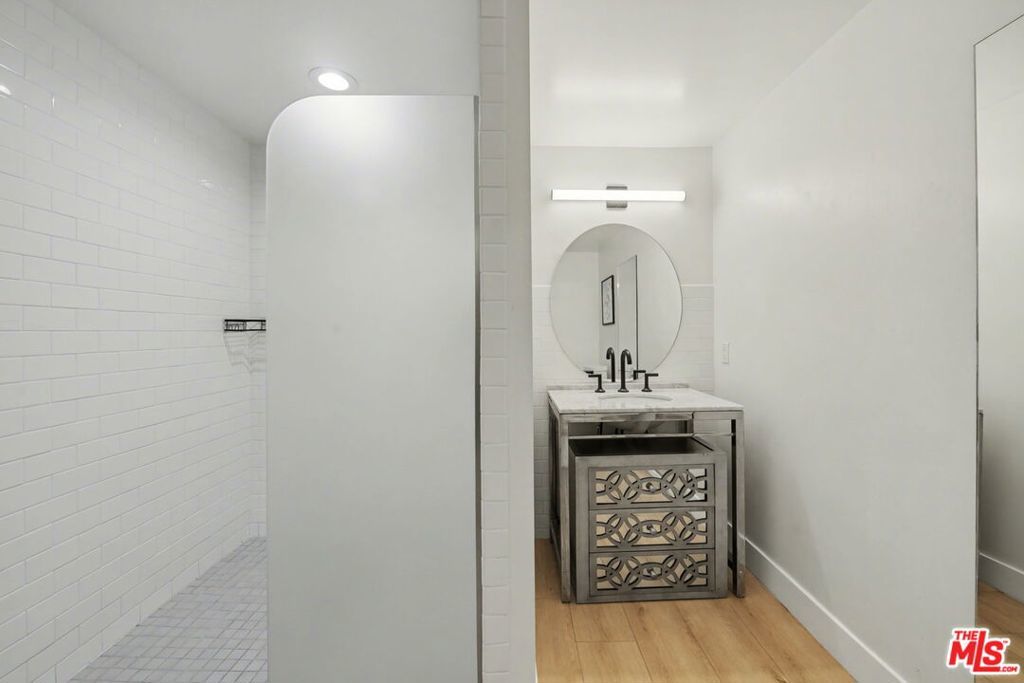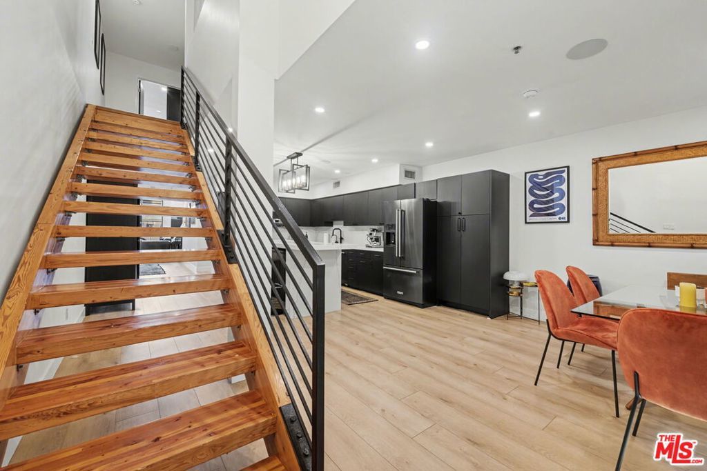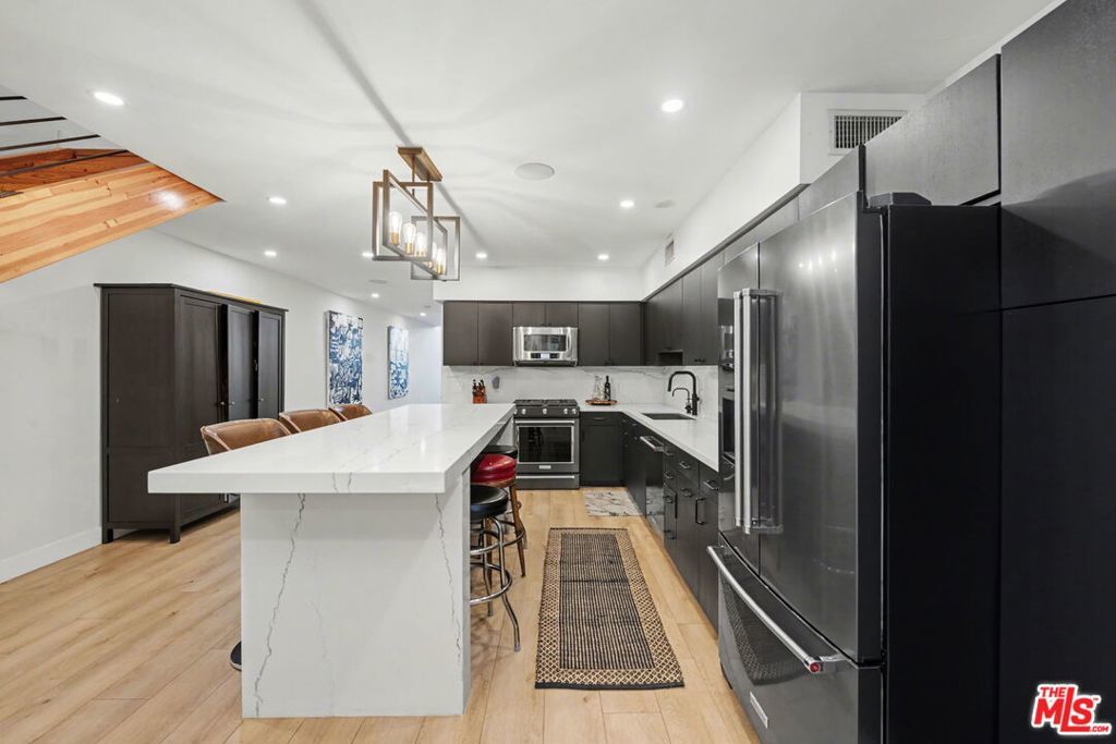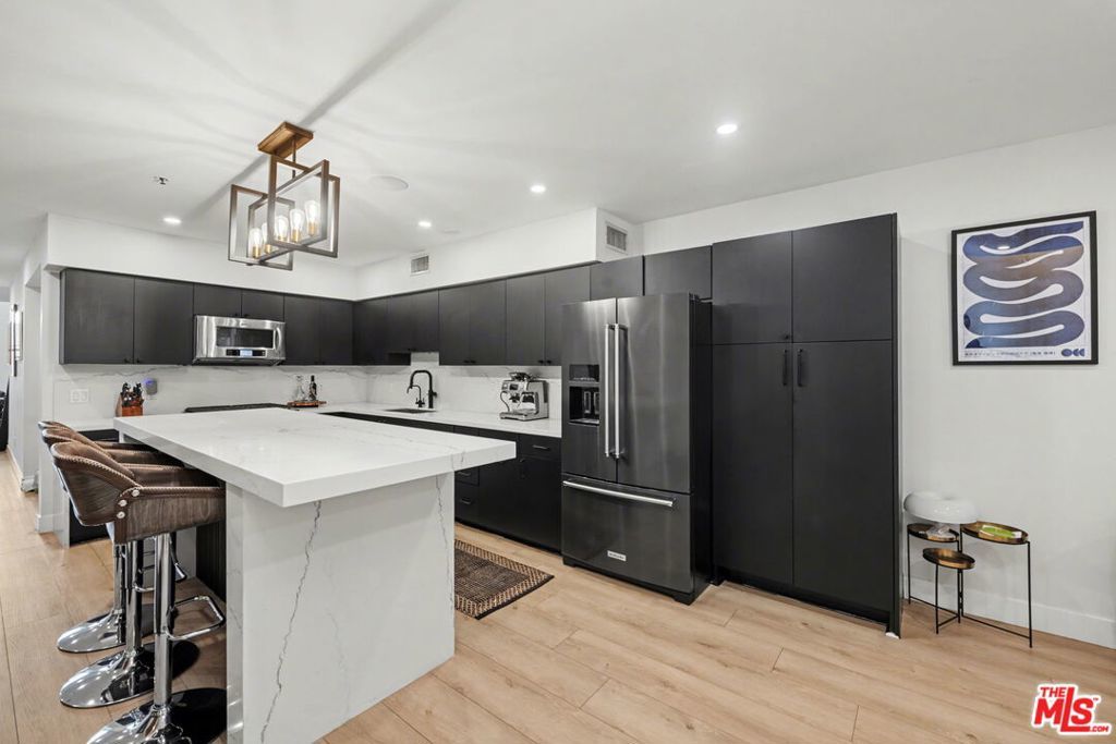 Architecturally striking, fully remodeled 2-bedroom loft-style residence located just off Main Street in the heart of Venice. This light-filled modern condo with a single-family home feel, featuring soaring double-height ceilings, expansive windows, and a seamless indoor-outdoor layout that creates an open and airy living experience. The open living area showcases a sleek fireplace, custom cabinetry, and designer finishes throughout, with large windows that flood the space with natural light and open to a private balcony ideal for outdoor seating and entertaining. The designer kitchen offers sleek custom cabinetry, quartz countertops, stainless steel appliances, and an expansive island perfect for hosting and everyday living. Warm wide-plank wood floors, contemporary architectural details, custom lighting, and thoughtful built-ins create a refined yet comfortable living environment. The upstairs bedroom retreat includes a custom walk-in closet with extensive built-ins and a beautifully updated bathroom. Additional highlights include in-unit laundry, ample storage, and two side-by-side parking spaces in a secure garage.Unbeatable location just a block from Abbot Kinney, moments from Venice Beach, top restaurants, cafes, boutiques, and coastal bike paths. A rare offering combining modern design, functionality, and privacy in one of Venice's most desirable neighborhoods.