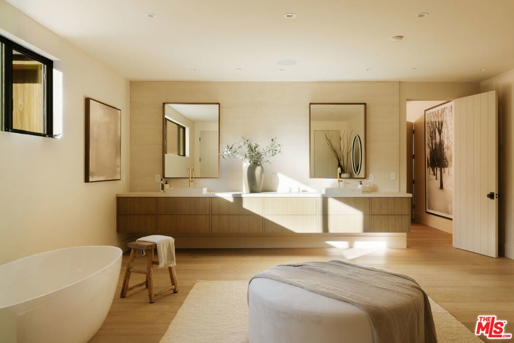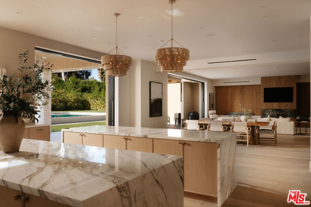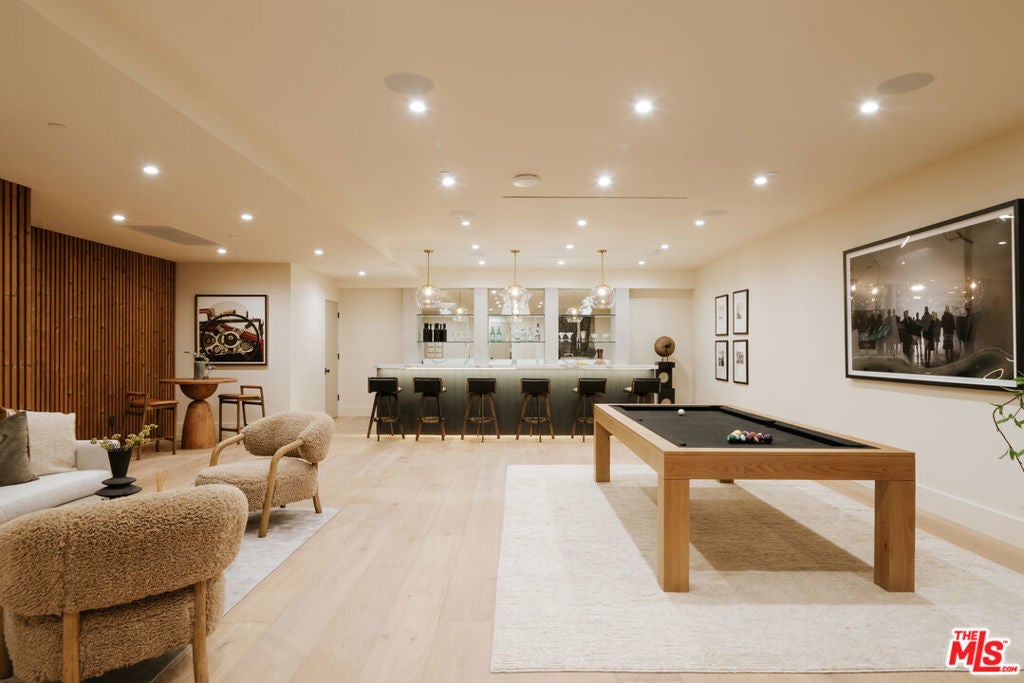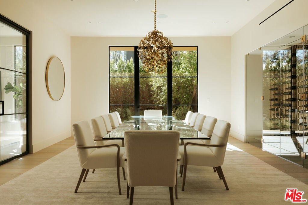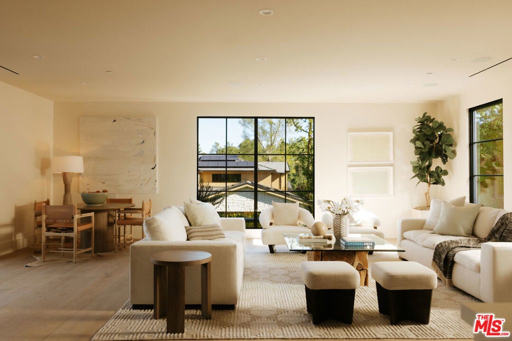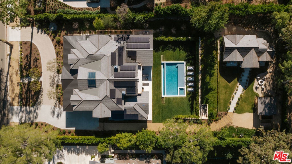 Tucked behind the gates of Hidden Hills, this modern estate unfolds like a private resort, offering over 16,000 square feet of effortless luxury. A dramatic entry and sculptural staircase open to expansive living spaces and a statement kitchen with dual waterfall islands, premium appliances, and a fully outfitted chef's kitchen. Glass walls slide away to reveal a resort-style backyard with a reverse infinity-edge pool, spa, fire features, intimate lounge areas, and a refined guest house. The primary suite is calm and indulgent with a private terrace, spa-inspired bath, and dual custom closets, while the lower level elevates daily living with a wellness-focused retreat featuring a fitness studio, theater, cocktail bar, game room, sauna, steam room, cold plunge, and massage suite. Private, polished, and impeccably executed, this is luxury living at its highest level in Hidden Hills.