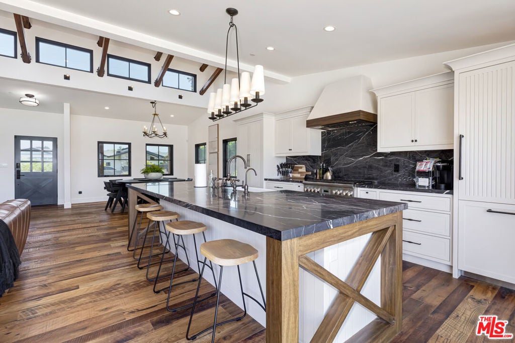 Experience the pinnacle of coastal California living in this newly constructed, architect-designed modern farmhouse, perfectly positioned in the heart of prestigious Point Dume. Designed by acclaimed architect Quentin Stanton, this stunning three-bedroom residence blends clean modern lines with warm farmhouse elegance, all set on over an acre of private, gated land.Thoughtfully designed for both relaxation and entertaining, the home features expansive indoor-outdoor living spaces, a sparkling resort-style pool, and serene natural surroundings that create a true sense of retreat. Floor-to-ceiling windows frame sweeping mountain vistas and partial ocean views, filling the home with natural light and coastal energy.One of the home's standout features is the rooftop deck, complete with a fire pit and panoramic ocean viewsthe perfect setting for sunset cocktails, stargazing, or cozy evenings overlooking the Pacific. Whether hosting friends or unwinding after a beach day, this elevated outdoor space captures the magic of Malibu living.Point Dume is one of Malibu's most sought-after enclaves, celebrated for its exclusive estate properties, dramatic blufftop scenery, and easy access to some of the area's most secluded beaches. From Little Dume to Zuma, you're moments away from world-class surf, hiking trails, and coastal adventures. The neighborhood offers a rare blend of privacy, community, and laid-back sophistication.For added convenience and fun, the home can be available with a golf cart, making quick trips to the beach, local trails, or Point Dume Village effortless and quintessentially Malibu.This is more than a homeit's a lifestyle sanctuary where modern luxury meets coastal tranquility. A rare opportunity to enjoy refined design, natural beauty, and one of Malibu's most iconic neighborhoods, all in one unforgettable property.