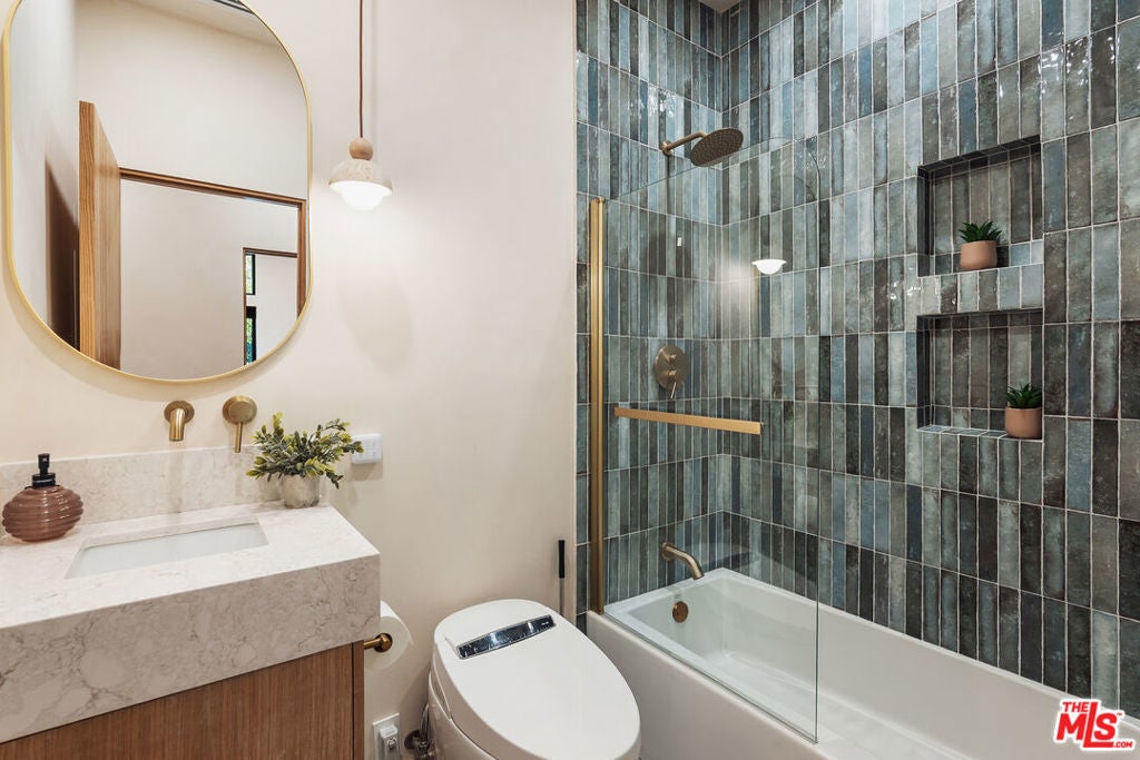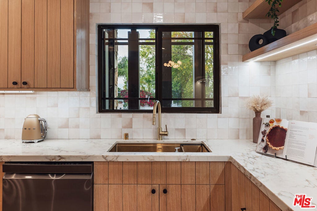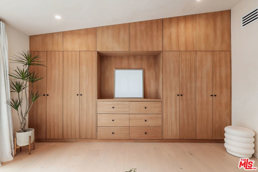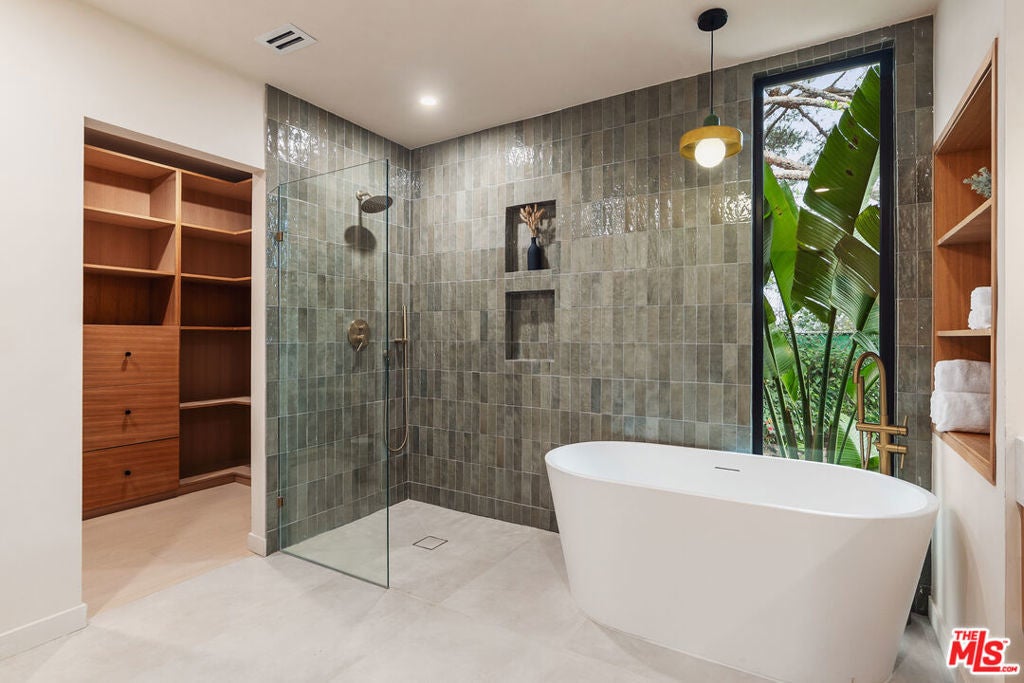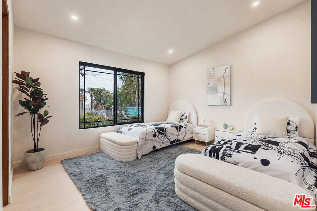 Welcome to this impeccably reimagined Mid-Century Modern residence by renowned architect Charles Du Bois, where organic modern design meets elevated contemporary living in the heart of Woodland Hills. Set on an expansive 12,000-square-foot lot, this 3,052-square-foot architectural showpiece offers five bedrooms, three bathrooms, and a seamless indoor-outdoor lifestyle curated for modern luxury. The interiors unfold through a light-filled, open-concept floor plan highlighted by soaring vaulted wood ceilings, exposed beams, curated lighting, and a striking double-sided fireplace that anchors the living spaces with warmth and sophistication. The chef's kitchen is both refined and functional, featuring stainless steel appliances, sleek marble countertops, and custom cabinetry ideal for intimate gatherings and elevated entertaining alike. The primary suite serves as a serene retreat, complete with a spa-inspired bath and two generous walk-in closets. Additional bedrooms are thoughtfully designed to offer flexibility, comfort, and style. This residence has been comprehensively updated with all major systems fully replaced, including new plumbing, electrical, roofing, and mechanical systems, offering modern efficiency and peace of mind alongside its timeless design. Outdoors, the property transforms into a private resort. Enjoy a newly constructed pool, a covered cabana with a fully equipped outdoor kitchen, and lush, manicured grounds that provide exceptional privacy and tranquilityperfect for entertaining, relaxing, or enjoying everyday California living. Ideally located moments from Calabasas' premier dining and shopping and within a highly regarded school district, this exceptional offering delivers a rare blend of architectural pedigree, modern luxury, and an enviable lifestyle.