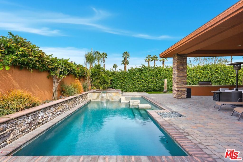 The Pinnacle of Palmilla Living Experience with unparalleled luxury in this stunning 3BD/2.5BA fully furnished contemporary masterpiece. Situated on a premium lot within the prestigious, 24-hour guard-gated Palmilla community, this home has been meticulously maintained and recently elevated with a newly renovated designer kitchen, blending fresh, modern aesthetics with professional-grade Sub-Zero and Thermador appliances. Twelve foot ceilings and custom slate flooring create an airy, expansive atmosphere. The great room's floor-to-ceiling glass pocket doors offer a seamless transition to a private desert oasis. Outside, enjoy a covered patio with surround sound, a built-in BBQ kitchen, and a sparkling pool/spa featuring smart LED lighting. With recent upgrades including new high-efficiency HVAC units, Toto bidet toilets, fresh paint and flooring, this entertainer's dream is turnkey and ready for move in.