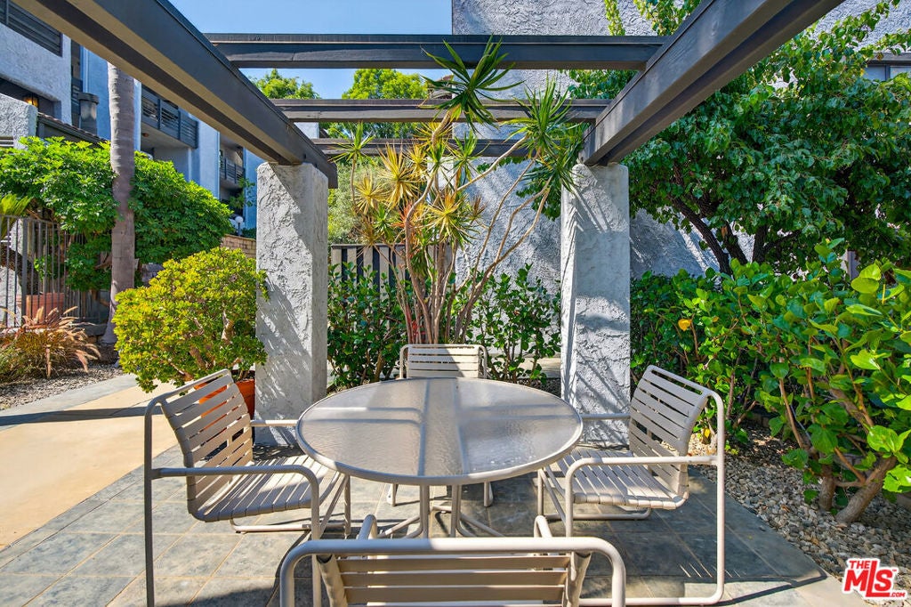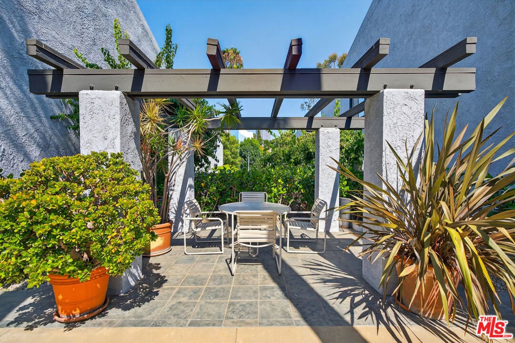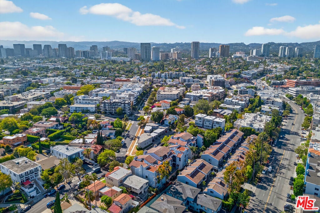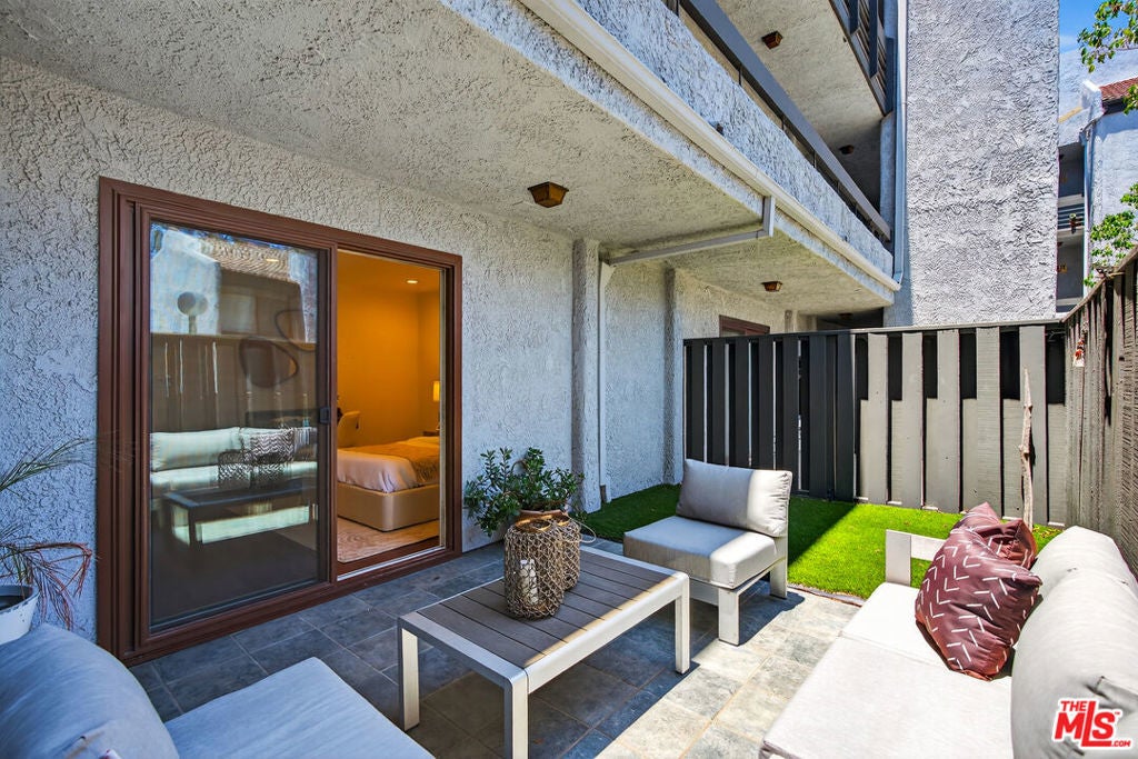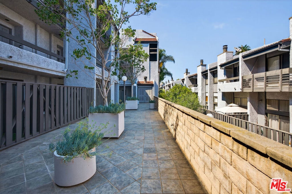 Welcome to this beautifully 2-bedroom, 2.5-bath reverse-floorplan townhome, tucked away on a peaceful, tree-lined street in the heart of Westwood.The upper level features a sun-drenched, expansive living room with soaring ceilings and a classic marble fireplaceperfect for cozy evenings. Adjacent to the formal dining area is a built-in wet bar, and sliding glass doors open to a generous balcony, ideal for outdoor dining or simply relaxing in the quiet surroundings.The chef's kitchen is a standout with custom tilework, stainless steel appliances, ample cabinetry, and a built-in desk alongside a convenient in-unit laundry area.Downstairs, the spacious primary suite offers two walk-in closets, a charming window seat, and a luxurious en-suite bath with granite countertops and travertine flooring. The second bedroom enjoys direct access to a large private patioperfect for morning coffee or evening relaxation.Additional highlights include two side-by-side parking spaces, plenty of guest parking, and access to a well-maintained community spa.Located just minutes from Century City, Beverly Hills, Westfield Mall, and UCLA, and within short distance to top-rated Westwood Charter Elementary and local restaurants. Don't miss this rare opportunity to own in one of West LA's most sought-after neighborhoods!