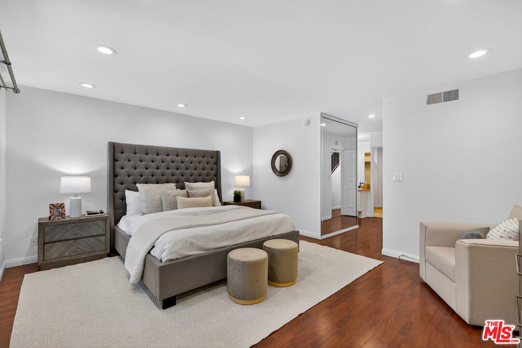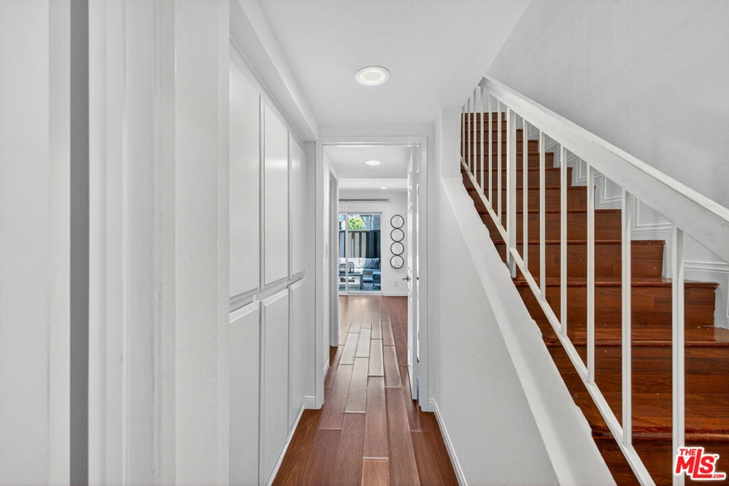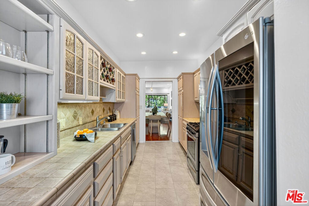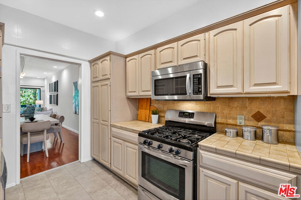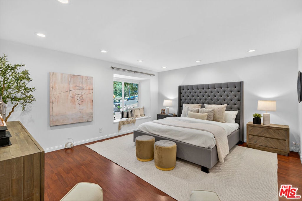 Welcome to this beautifully 2-bedroom, 2.5-bath reverse-floorplan townhome, tucked away on a peaceful, tree-lined street in the heart of Westwood.The upper level features a sun-drenched, expansive living room with soaring ceilings and a classic marble fireplaceperfect for cozy evenings. Adjacent to the formal dining area is a built-in wet bar, and sliding glass doors open to a generous balcony, ideal for outdoor dining or simply relaxing in the quiet surroundings.The chef's kitchen is a standout with custom tilework, stainless steel appliances, ample cabinetry, and a built-in desk alongside a convenient in-unit laundry area.Downstairs, the spacious primary suite offers two walk-in closets, a charming window seat, and a luxurious en-suite bath with granite countertops and travertine flooring. The second bedroom enjoys direct access to a large private patioperfect for morning coffee or evening relaxation.Additional highlights include two side-by-side parking spaces, plenty of guest parking, and access to a well-maintained community spa.Located just minutes from Century City, Beverly Hills, Westfield Mall, and UCLA, and within short distance to top-rated Westwood Charter Elementary and local restaurants. Don't miss this rare opportunity to own in one of West LA's most sought-after neighborhoods!