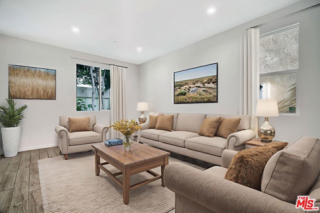 Step into this newer-construction, beautifully finished single-family home in the exclusive Heritage Collection and immediately feel the difference. Set on one of the largest lots in the community, this 4 BR + 3 BA, 1,575 sq (apx) residence with a versatile loft and attached 2-car garage offers an ideal blend of modern style, comfort, and low-maintenance living. Inside, an inviting open-concept great room showcases rich tile and laminate flooring, smooth ceilings, and energy-efficient LED recessed lighting. At the heart of the home is a gourmet kitchen with Caesarstone countertops, sleek subway and mosaic tile backsplashes, premium stainless-steel appliances, and abundant cabinetry, all flowing seamlessly into the dining and living areas, perfect for everyday living and entertaining. Just off the dining room, doors open to a private backyard retreat with low-maintenance artificial turf, creating a great setting for al fresco dining, weekend barbecues, or simply relaxing in the Southern California sunshine. Upstairs, the spacious primary suite features a walk-in closet and an ensuite bath with dual sinks, while the upper level includes a laundry closet with washer and dryer, plus a flexible loft with skylight, ideal for a home office or workout space. Thoughtfully designed for today's lifestyle, this home features inexpensive leased solar panels, a tankless water heater, and eco-conscious touches throughout, offering both sustainability and savings. Don't miss your chance to own this modern, move-in-ready home in the sought-after Heritage Collection community. See website for fantastic video/aerial/drone/3D Imaging. Some of the photos have virtual staging, along with the original photo that follows. Enjoy!