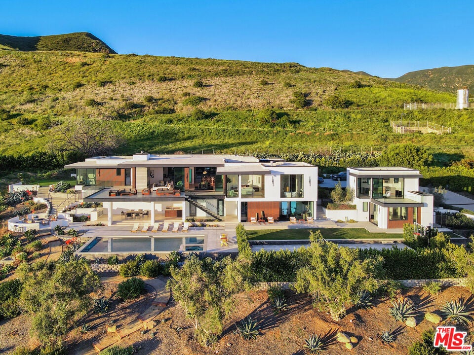 Modern Malibu Compound. Privacy, Scale, and Views just minutes from Zuma. Tucked behind gates on over 1.5 acres, this newly built estate offers a rare combination of space, privacy, and clean modern design. Spanning nearly 7,000 square feet, the home is designed for seamless indoor-outdoor living, with all primary living spaces on one level. Walls of glass open to expansive terraces, a resort-style pool, and sweeping ocean and mountain views. Inside, the finishes are refined and intentional. Wide-plank flooring, custom stonework, and a chef's kitchen suited for both daily living and entertaining. The primary suite is a private retreat, complete with its own terrace, dual spa-like baths, and unobstructed ocean views. A fully equipped, multi-level guest house offers a separate living experience with its own kitchen, bath, and private space - ideal for guests, staff, or a dedicated workspace. The property is designed as a true compound, featuring a gym, sport court, and multiple outdoor living areas, including a bar and pavilion for entertaining. The grounds are private, landscaped, and fully usable - offering a level of scale and functionality rarely found this close to the coast. Located just minutes from Zuma Beach, Point Dume, and Malibu's best dining, this is where lifestyle and convenience align. In a market where buyers are waiting for something worth moving on - this is it.