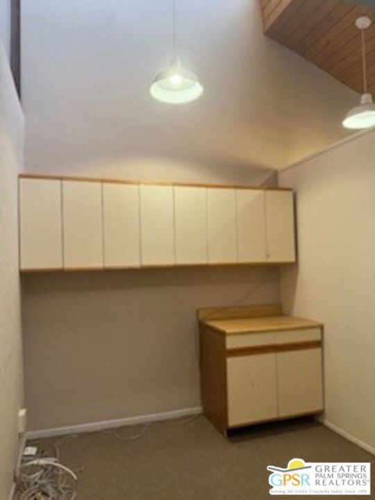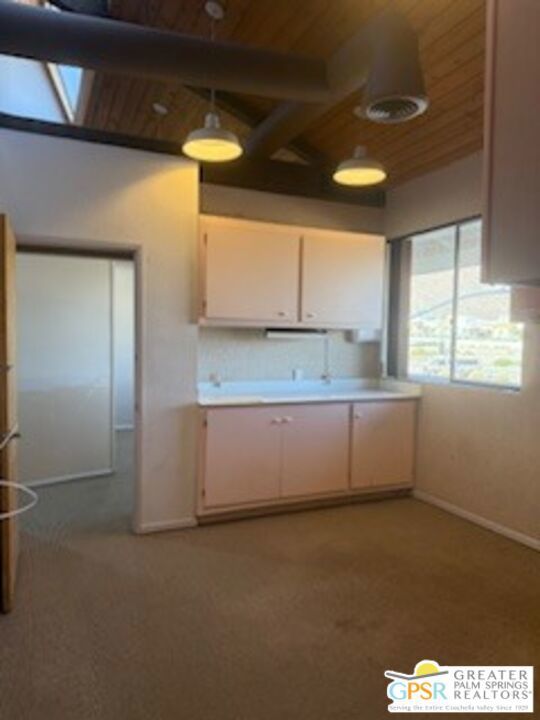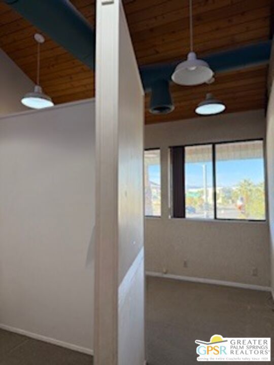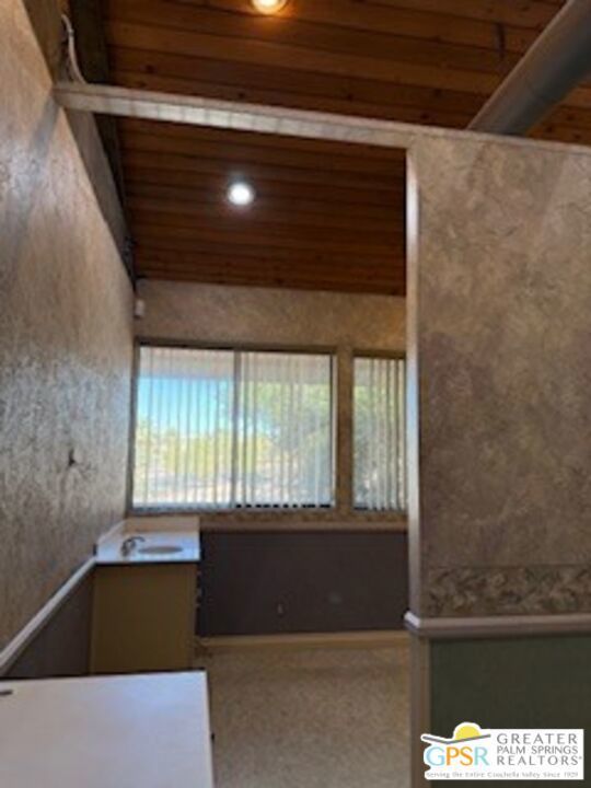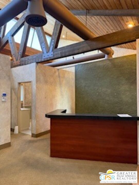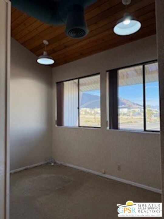 Architecturally Interesting office space on 2nd floor, of Appx.1,135 Sq Ft. Lease price reduced to $1,575 per.mo. @$1.39Sq.Ft. Located at the intersection of S.Palm Canyon & Mesquite, on the South East side, across from Cody Place. Space features includes high ceilings, a half bath, a kitchenette and some lovely mtn.views. Also, unit could be shared with another tenant, each would have 3 rooms and share the reception area, kitchenette and half bath at $775 and $800. Also, a spacious parking lot and seller pays the water.