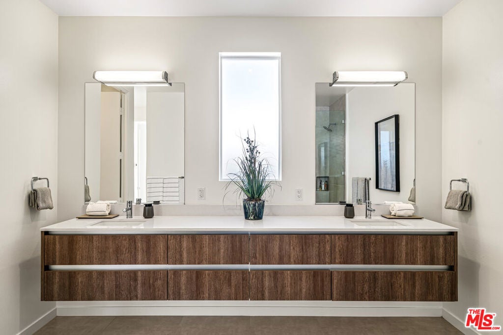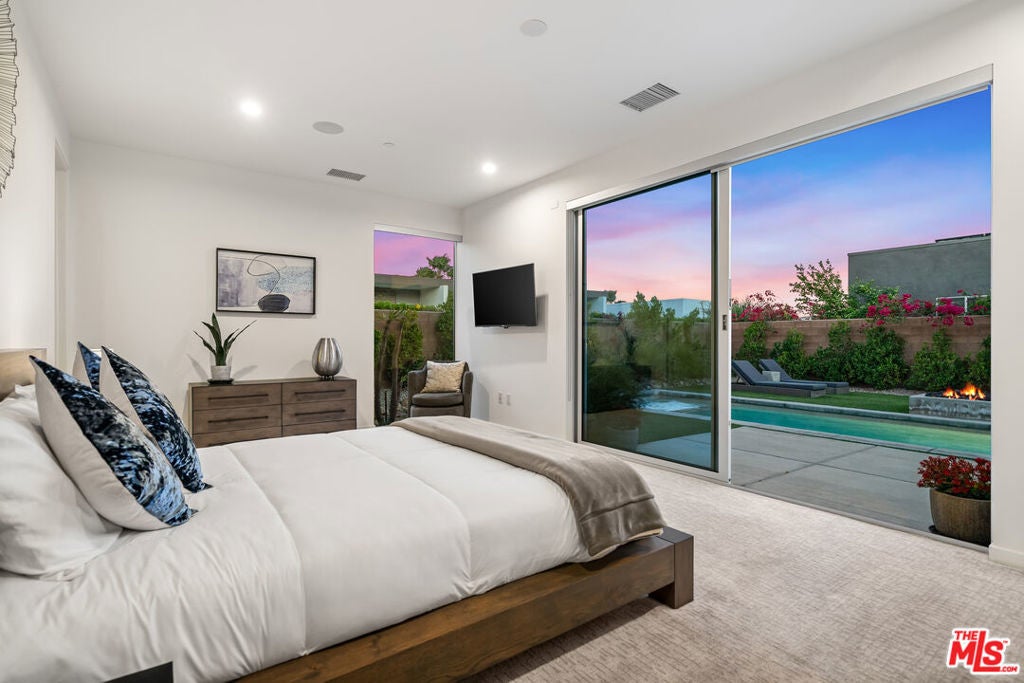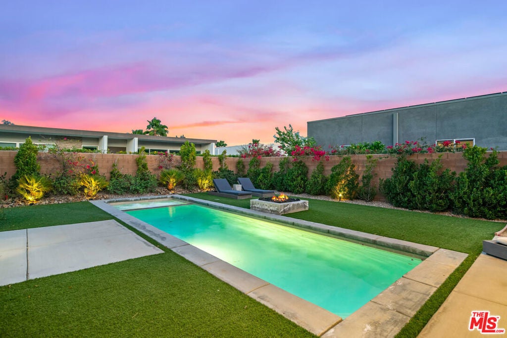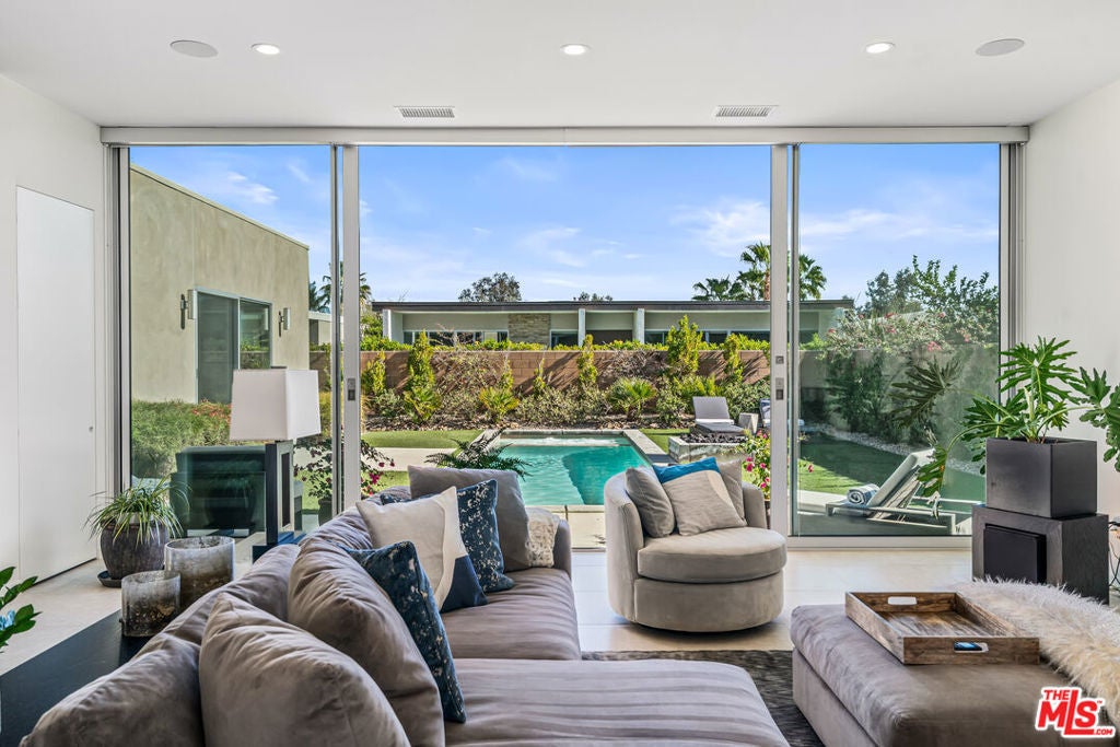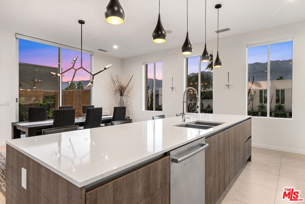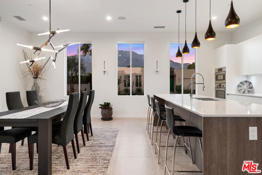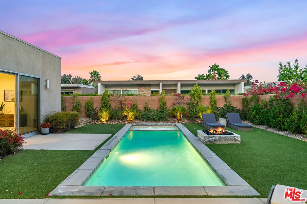 Experience elevated desert living at Escena in this luxury residence designed by renowned architect Anthony Poon and built by Alta Verde. The sought-after Garden floor plan is designed for seamless indoor/outdoor living, featuring a wall of floor-to-ceiling Fleetwood sliding doors that open from the living room to a private entertainer's backyard with pool, spa, fire-pit and breathtaking San Jacinto Mountain views. The expansive great room offers 10-foot ceilings, elegant tile flooring, and abundant natural light. The gourmet kitchen is a showpiece with an oversized island, designer pendant lighting, custom countertops and backsplash, Bosch appliances, and sleek Italian cabinetry perfect for both entertaining and everyday living. The sun-filled primary suite is a peaceful retreat with a spacious walk-in closet and spa-like bathroom featuring a floating dual-sink vanity, soaking tub, and walk-in shower. Two well-appointed guest bedrooms share a generous Jack-and-Jill bathroom, ideal for guests or family. Additional highlights include owned solar, Control4 Home system, dual-zone HVAC, home security system, and a two-car garage equipped with an upgraded electric vehicle charger. Escena is a beautifully landscaped guard-gated community offering access to a clubhouse, championship golf course, dog parks, and low HOA dues. Select furnishings available. (See photos, floor-plan & 3D Matterport)