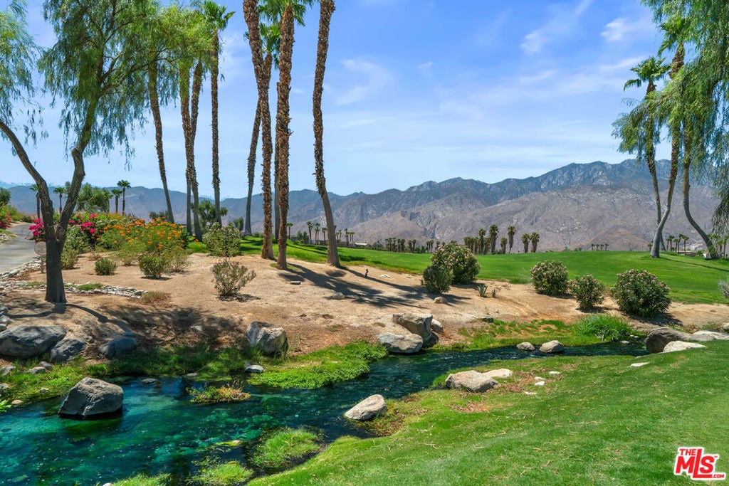 Experience elevated desert living at Escena in this luxury residence designed by renowned architect Anthony Poon and built by Alta Verde. The sought-after Garden floor plan is designed for seamless indoor/outdoor living, featuring a wall of floor-to-ceiling Fleetwood sliding doors that open from the living room to a private entertainer's backyard with pool, spa, fire-pit and breathtaking San Jacinto Mountain views. The expansive great room offers 10-foot ceilings, elegant tile flooring, and abundant natural light. The gourmet kitchen is a showpiece with an oversized island, designer pendant lighting, custom countertops and backsplash, Bosch appliances, and sleek Italian cabinetry perfect for both entertaining and everyday living. The sun-filled primary suite is a peaceful retreat with a spacious walk-in closet and spa-like bathroom featuring a floating dual-sink vanity, soaking tub, and walk-in shower. Two well-appointed guest bedrooms share a generous Jack-and-Jill bathroom, ideal for guests or family. Additional highlights include owned solar, dual-zone HVAC, home security system, and a two-car garage equipped with an upgraded electric vehicle charger. Escena is a beautifully landscaped guard-gated community offering access to a clubhouse, championship golf course, dog parks, and low HOA dues. Select furnishings available. (See photos, floor-plan & 3D Matterport)