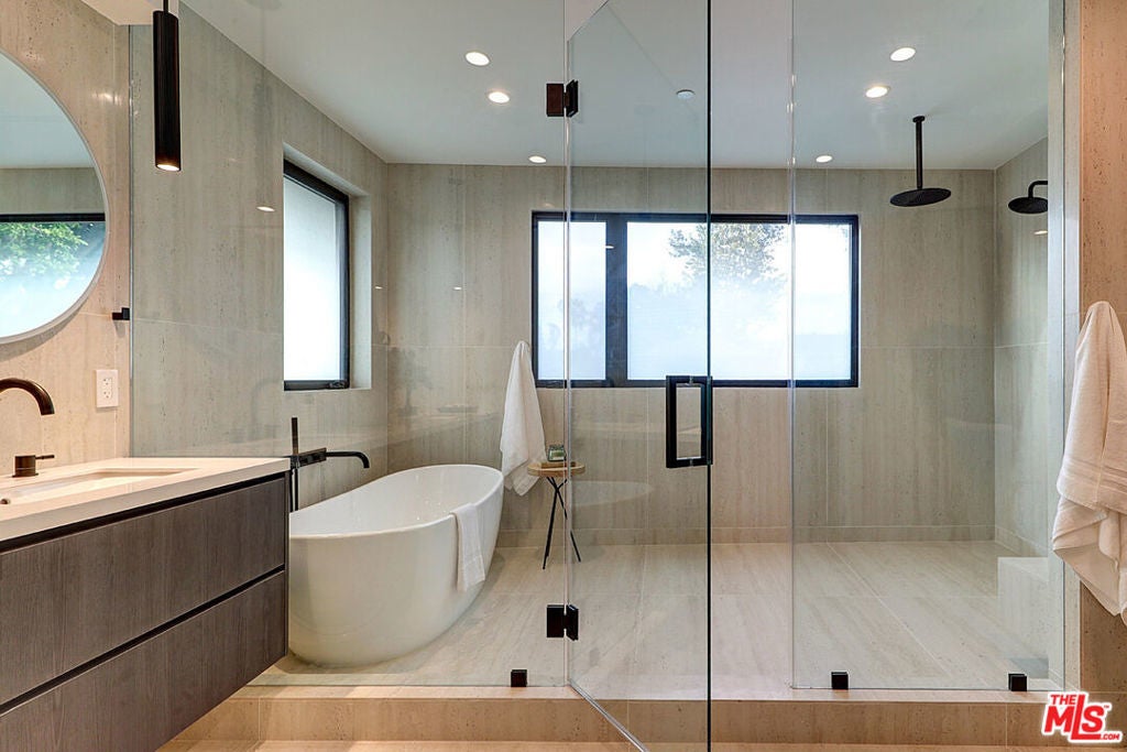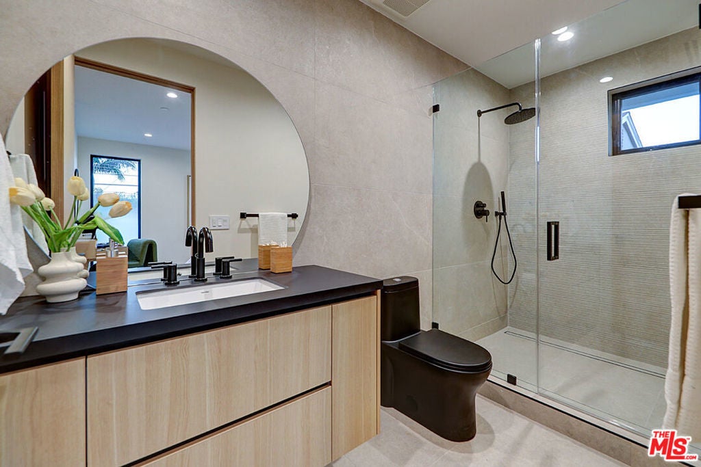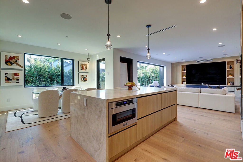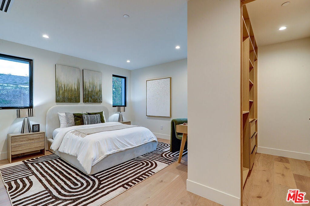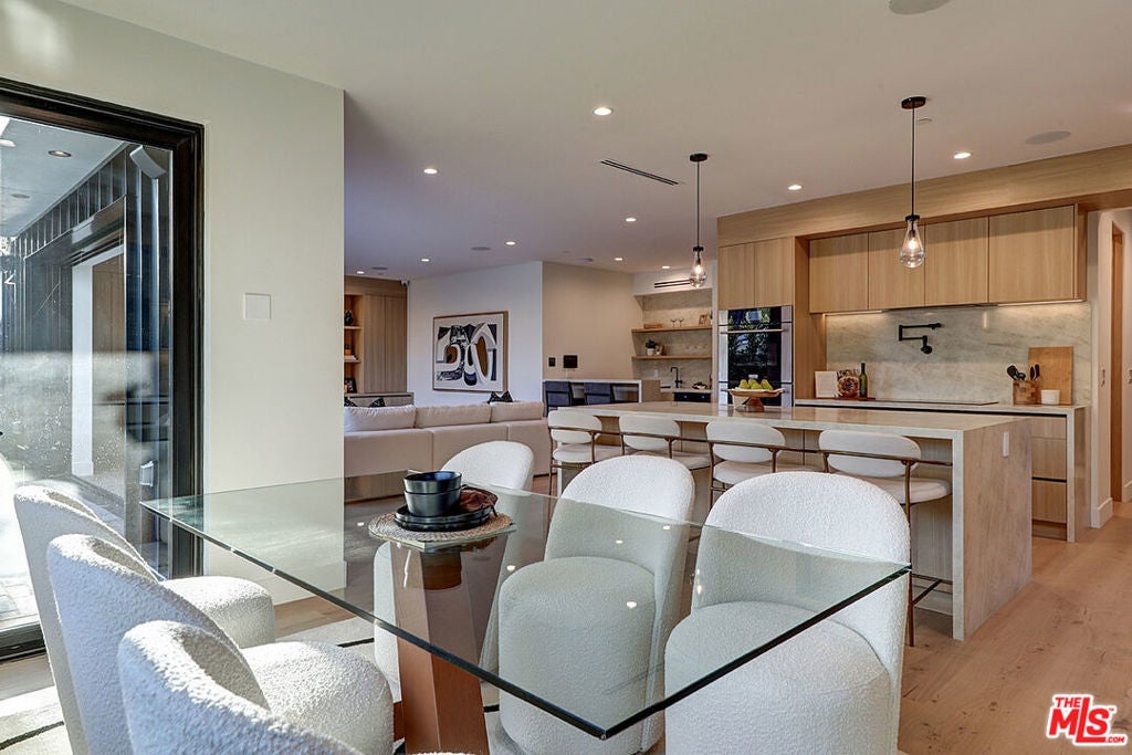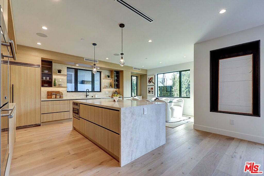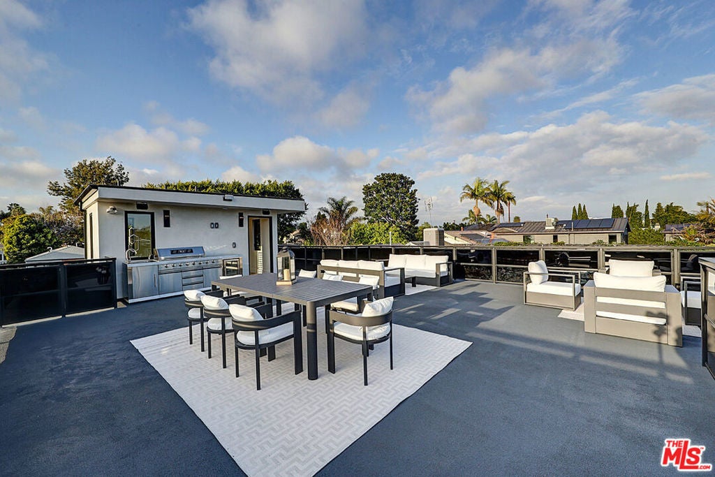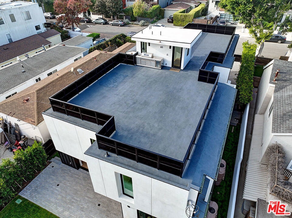 Welcome to the Oxford Triangle's defining address. This brand-new, never-lived-in contemporary residence delivers 4,416 SF of meticulously crafted living across three levels on a generous 6,001 SF lot. Five bedrooms and five and a half bathrooms all en-suite including a main floor suite for ultimate flexibility. The chef's kitchen features Viking double ovens, range, microwave, built-in refrigerator, and Miele dishwasher. An open-concept family room with 85" TV, built-in shelving, Modern Flames fireplace, custom bar, and wine closet flows through bi-fold slider doors to the rear yard for seamless indoor-outdoor living. Upstairs, the primary suite is a sanctuary leather wallpaper, reading sconces, private balcony, beverage center, oversized walk-in closet, and spa bath with double sinks and separate vanity. The crown jewel: a 1,600 SF rooftop deck with outdoor kitchen, built-in speakers, dining area, fire pit, conversation lounge, and movie-night-ready setup with west-facing sunset views. State-of-the-art SimpliDock smart home system, solar panels, and dual commercial-grade AC complete the package. This is what modern California living was always meant to be.